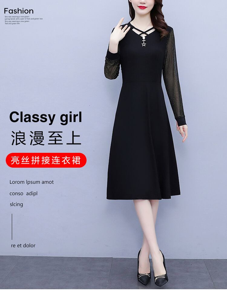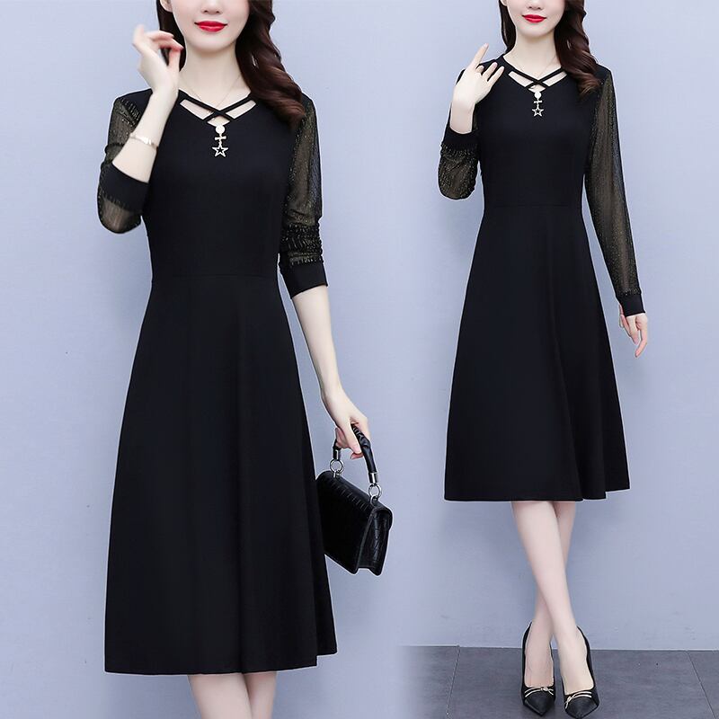 ブラックスカート オータムドレス ロング 大きめサイズ 秋物 muto82799241324