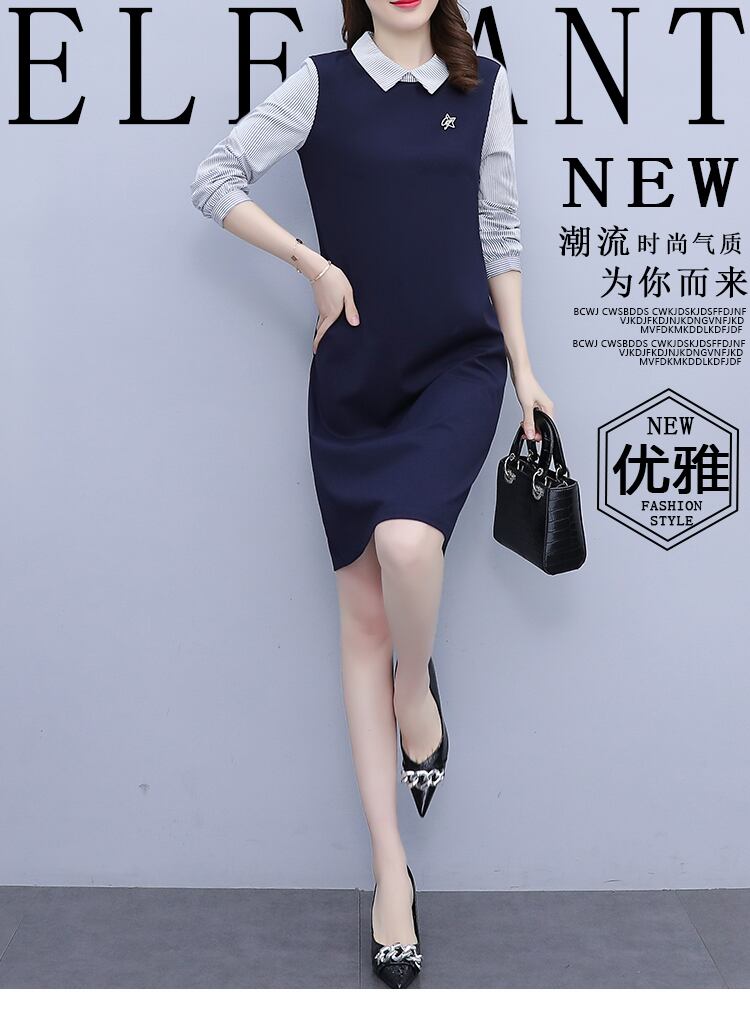 ドレス オータム薄手ストライプスカート ロング 大きめサイズ 秋物 ステッチ muto40024540545