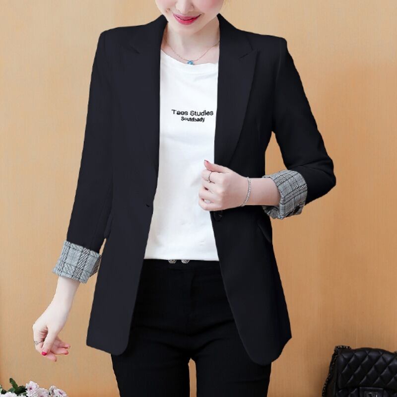 ブラックジャケット スプリングオータムスタイルカジュアルルーズトップス 大きめサイズ 春物 秋物 muto35788484768