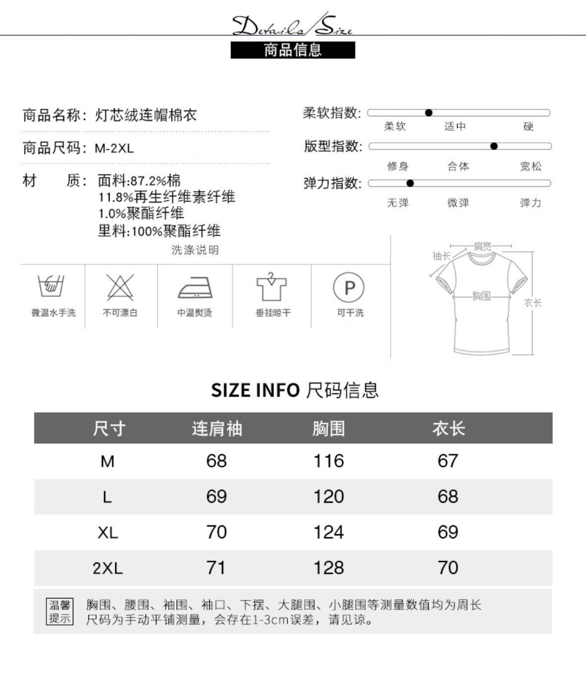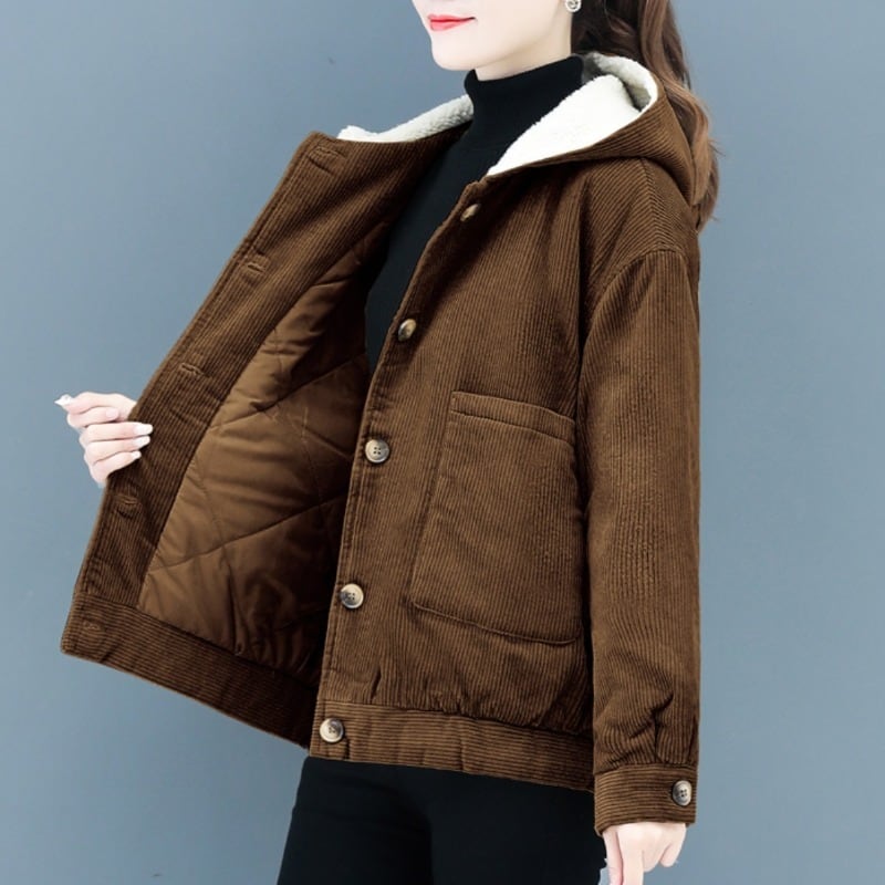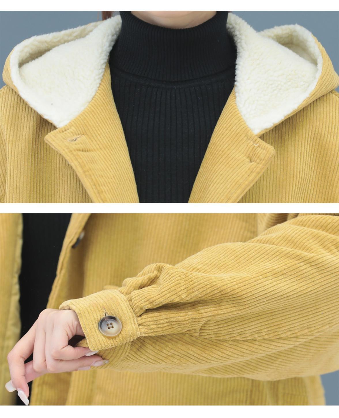 コーデュロイフードウィンタージャケット ベルベットコート コットン 大きめサイズ 冬物 muto23569087482