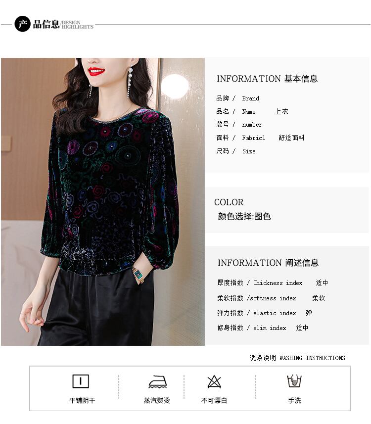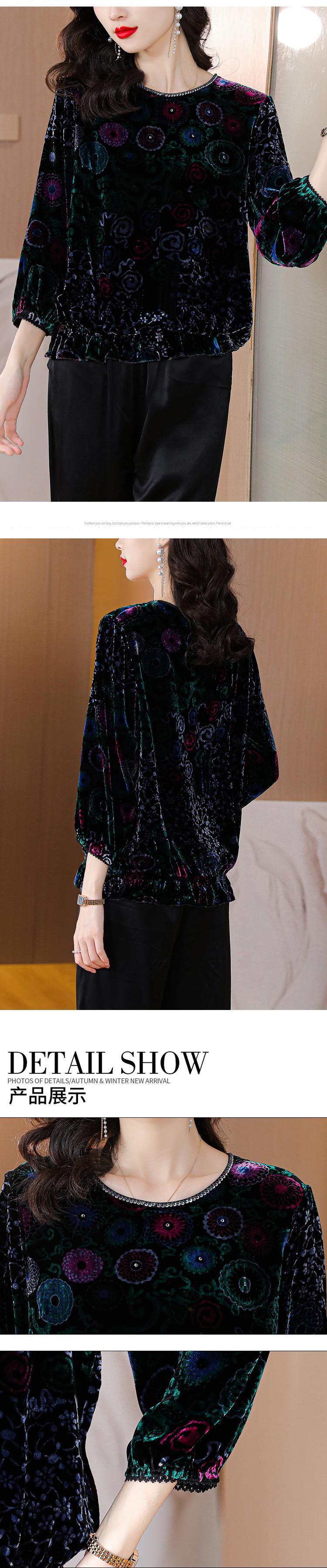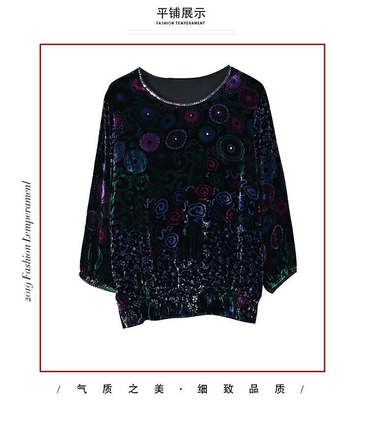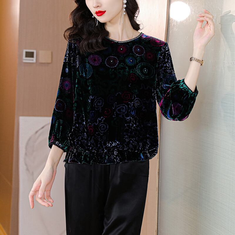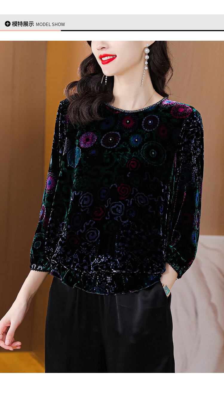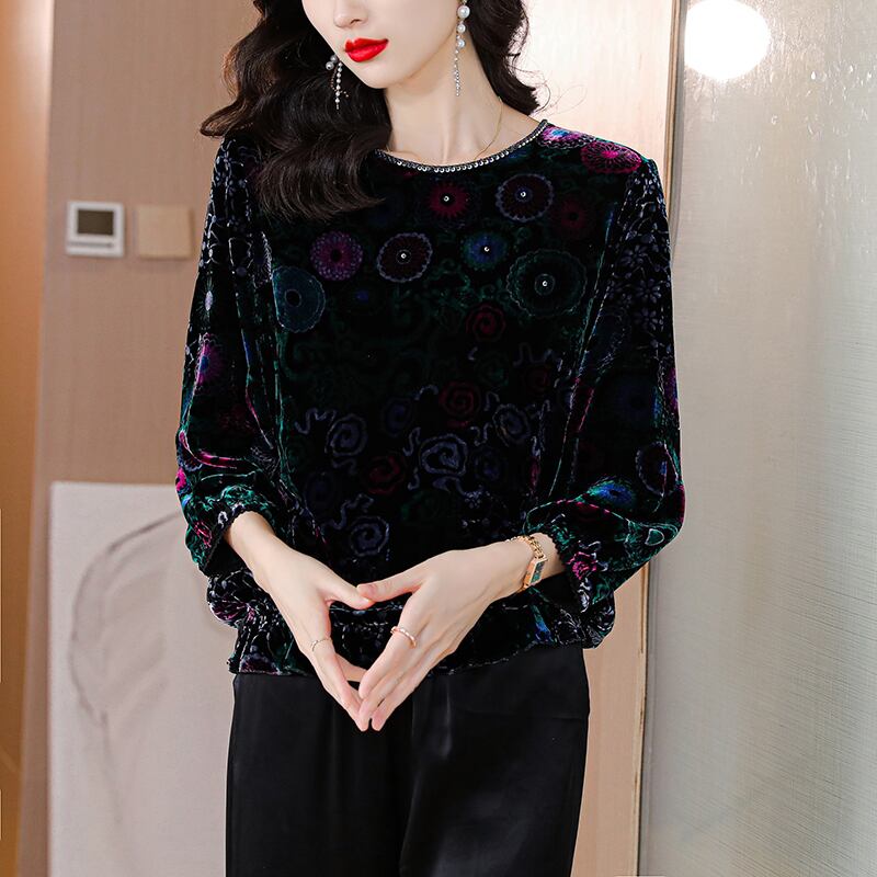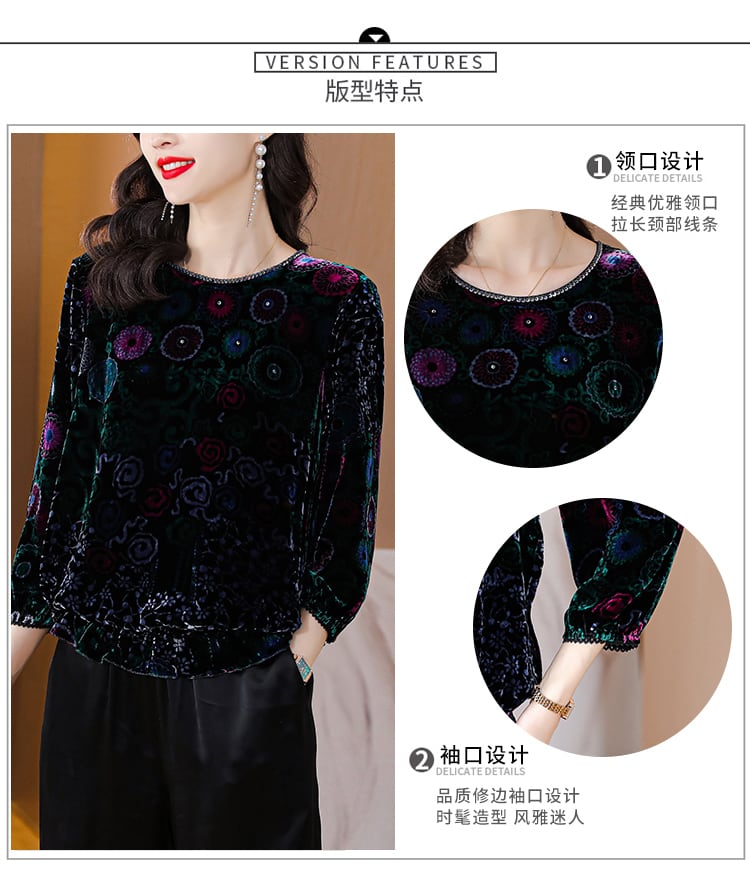 ベルベットトップス オータムウィンタースタンダードスリムシャツ レッド レトロ 刺繍 大きめサイズ 秋物 冬物 muto94972049829