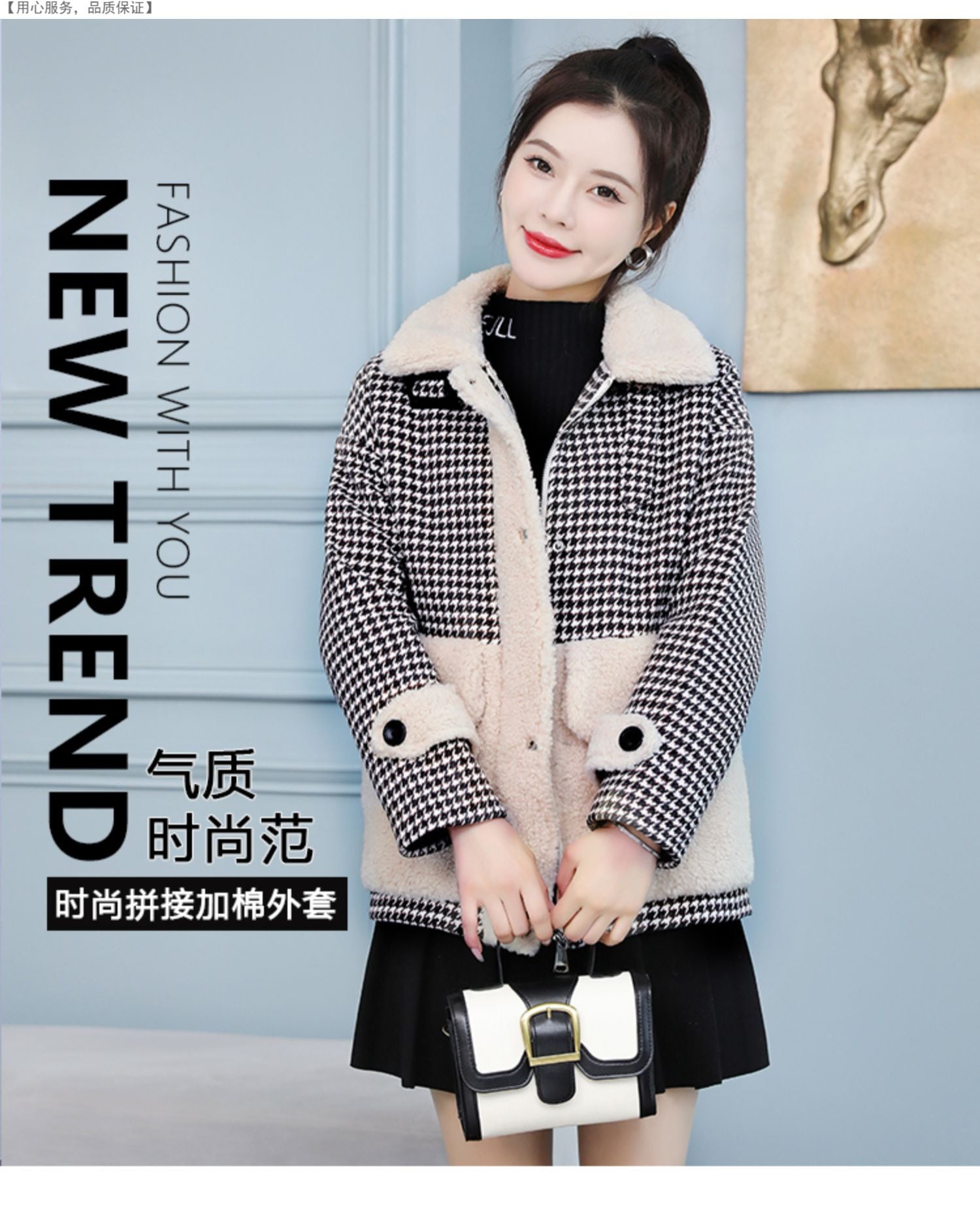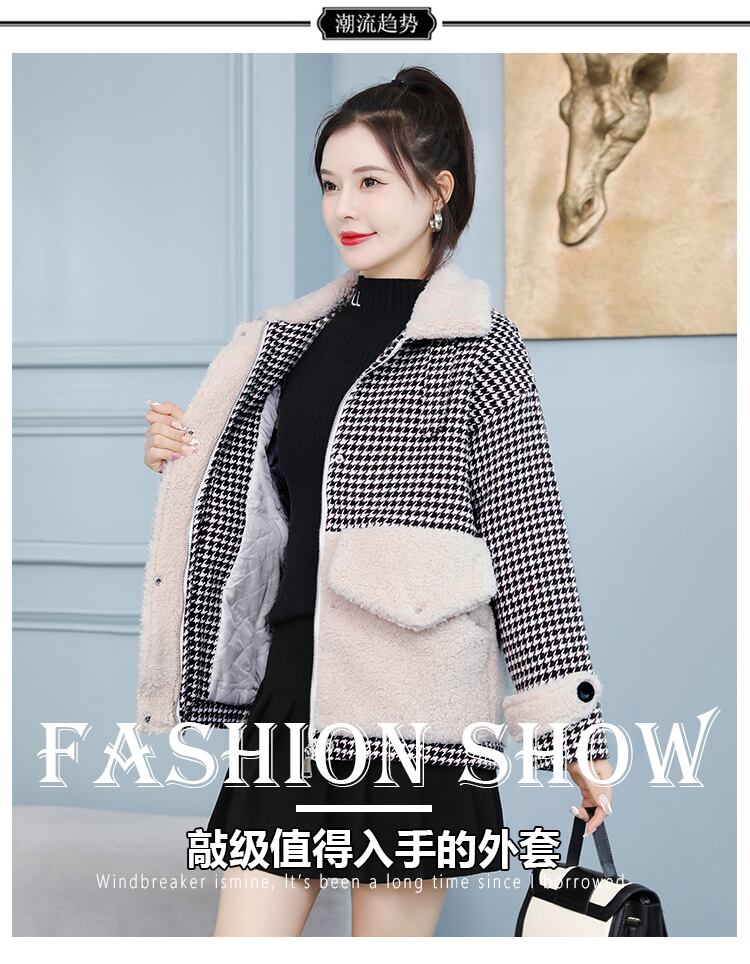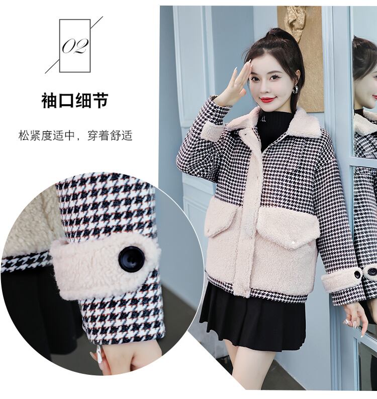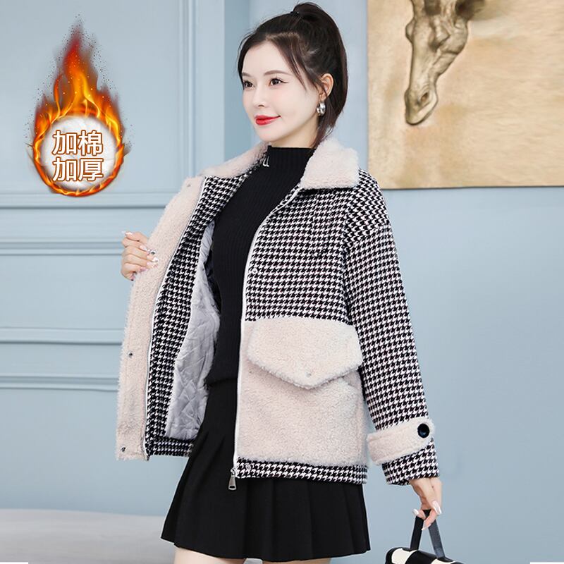 ウールショートコート オータムウィンターベルベット格子柄トップス コットン 大きめサイズ 秋物 冬物 muto93267327821