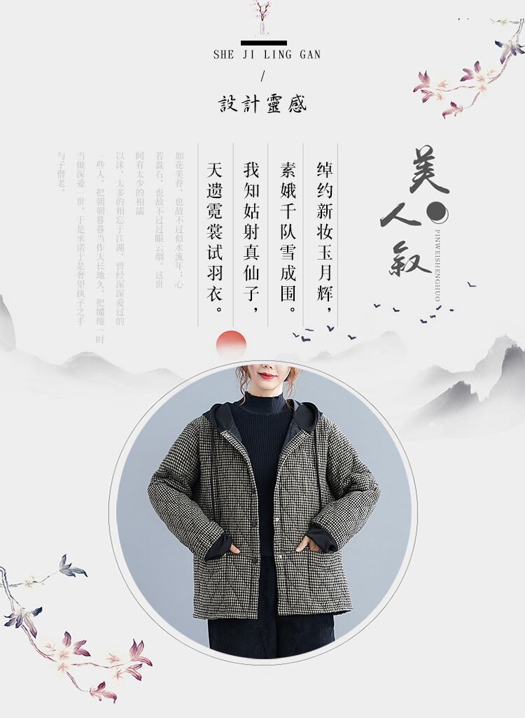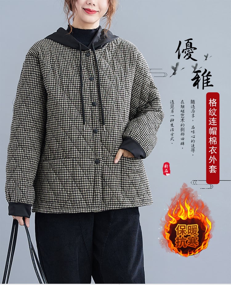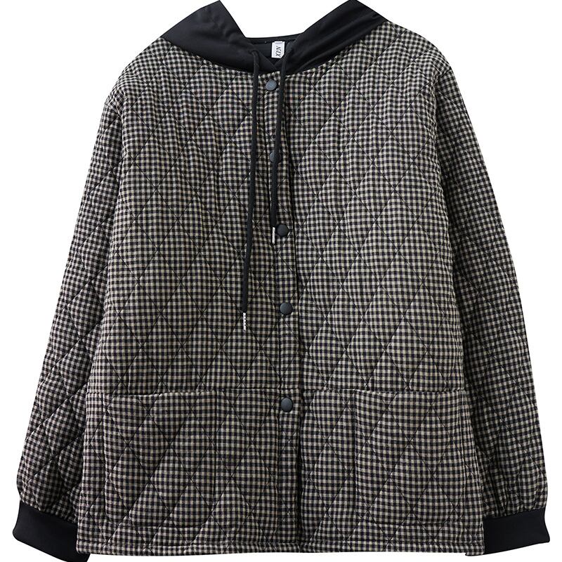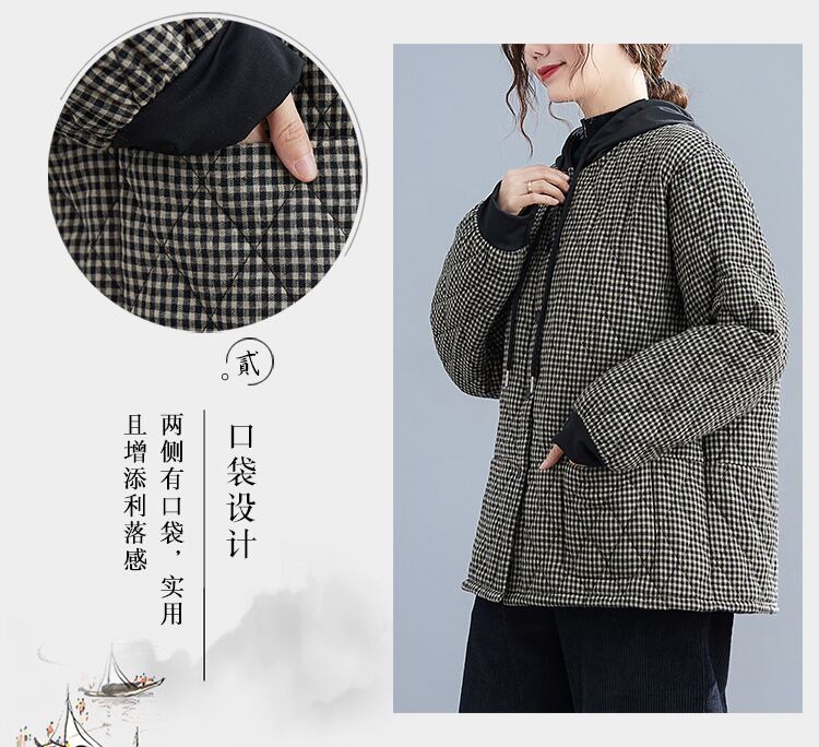 ショートジャケット ウィンタールーズフード格子柄トップス コート 大きめサイズ 冬物 muto73522077828
