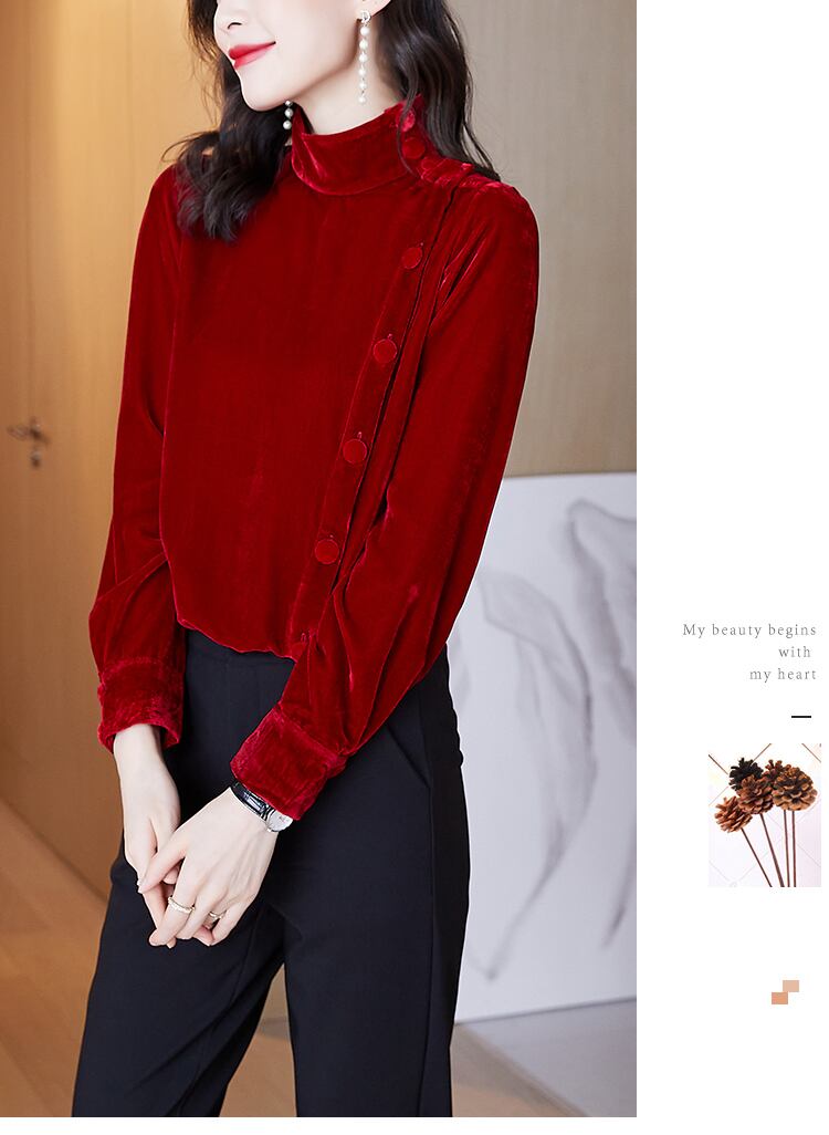 ゴールドベルベットシャツ オータムウィンタートップス 大きめサイズ 秋物 冬物 muto16674702790