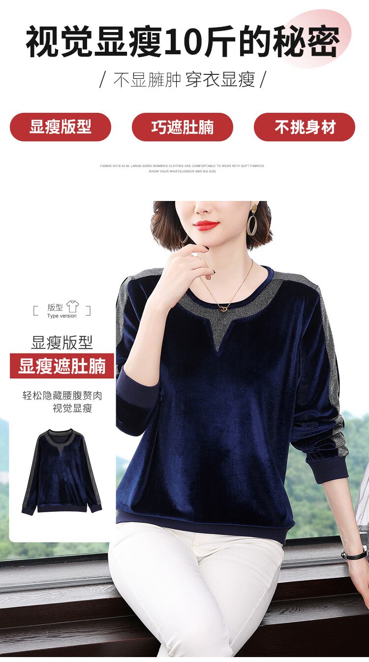 ゴールドベルベットシャツ Tシャツ スプリングオータムブラックトップス ロング 大きめサイズ 春物 秋物 muto33822343231