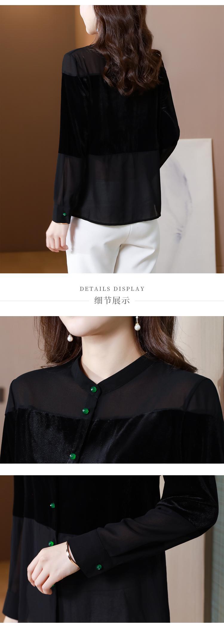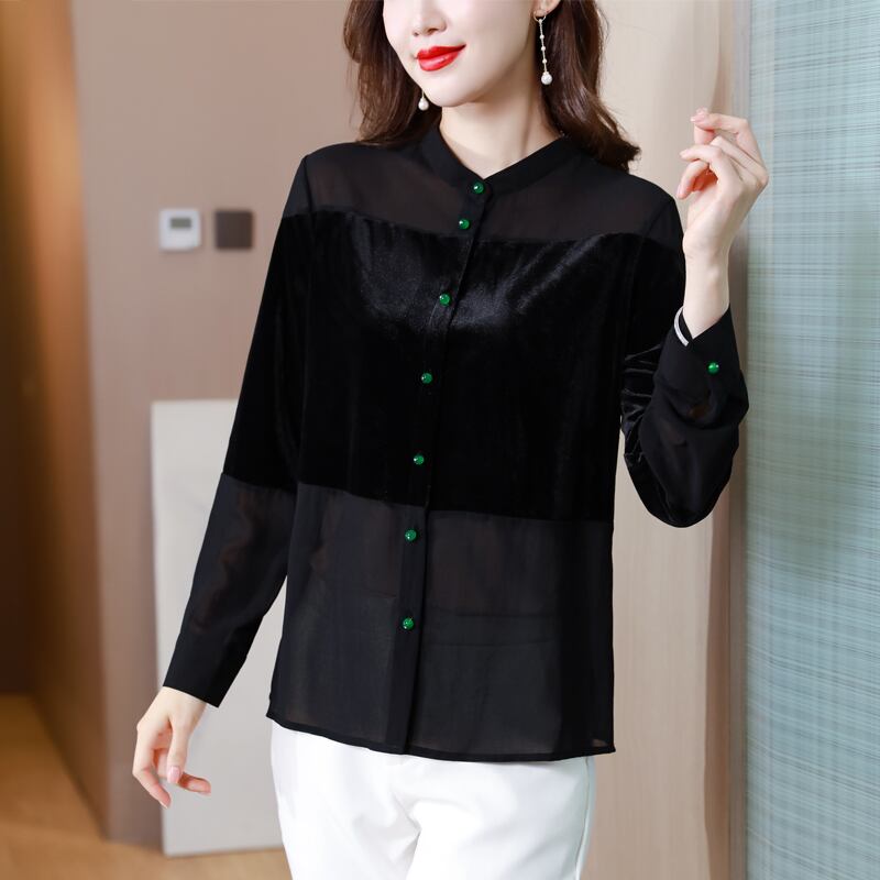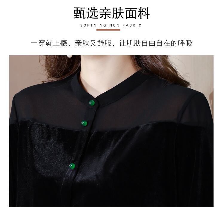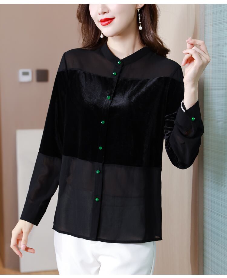 ブラックゴールドベルベットシャツ オータムトップス スタイルカーディガン ロング 大きめサイズ 秋物 ステッチ muto52151982978