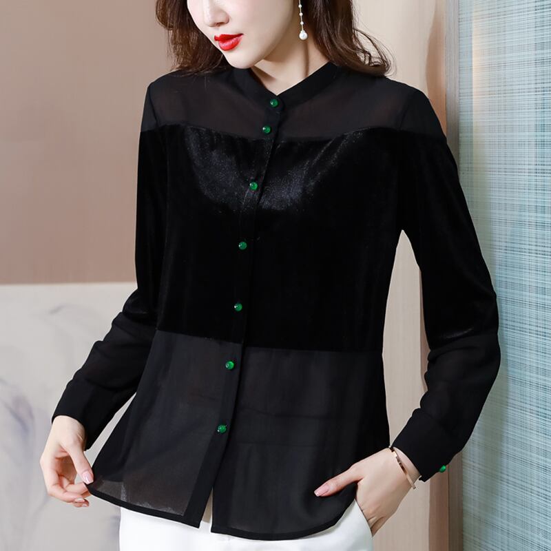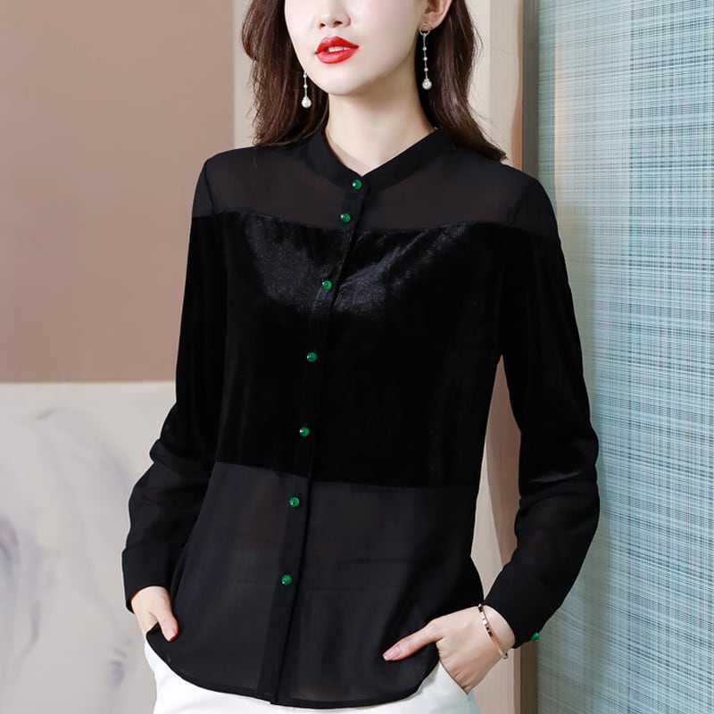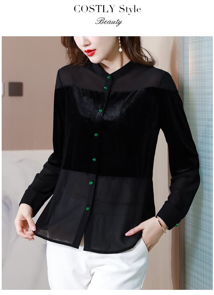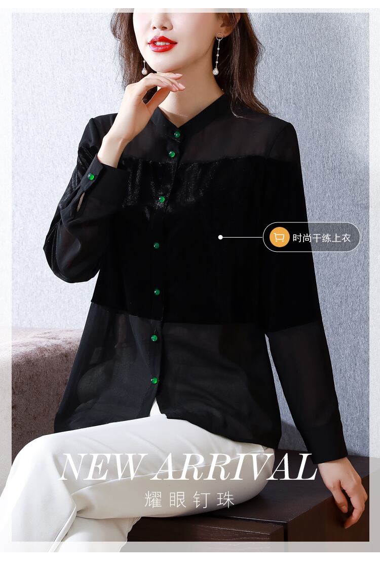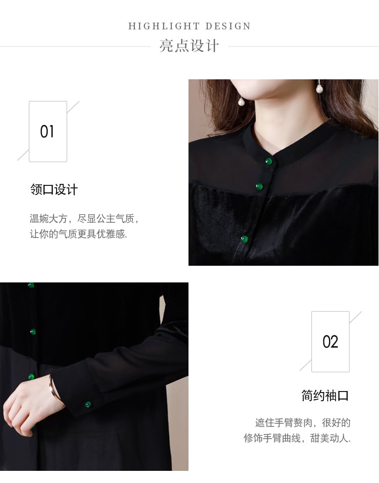 ブラックゴールドベルベットシャツ オータムトップス スタイルカーディガン ロング 大きめサイズ 秋物 ステッチ muto52151982978