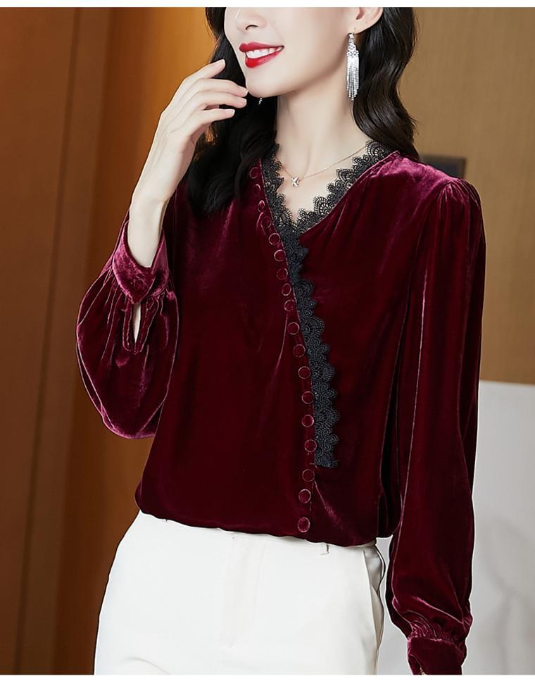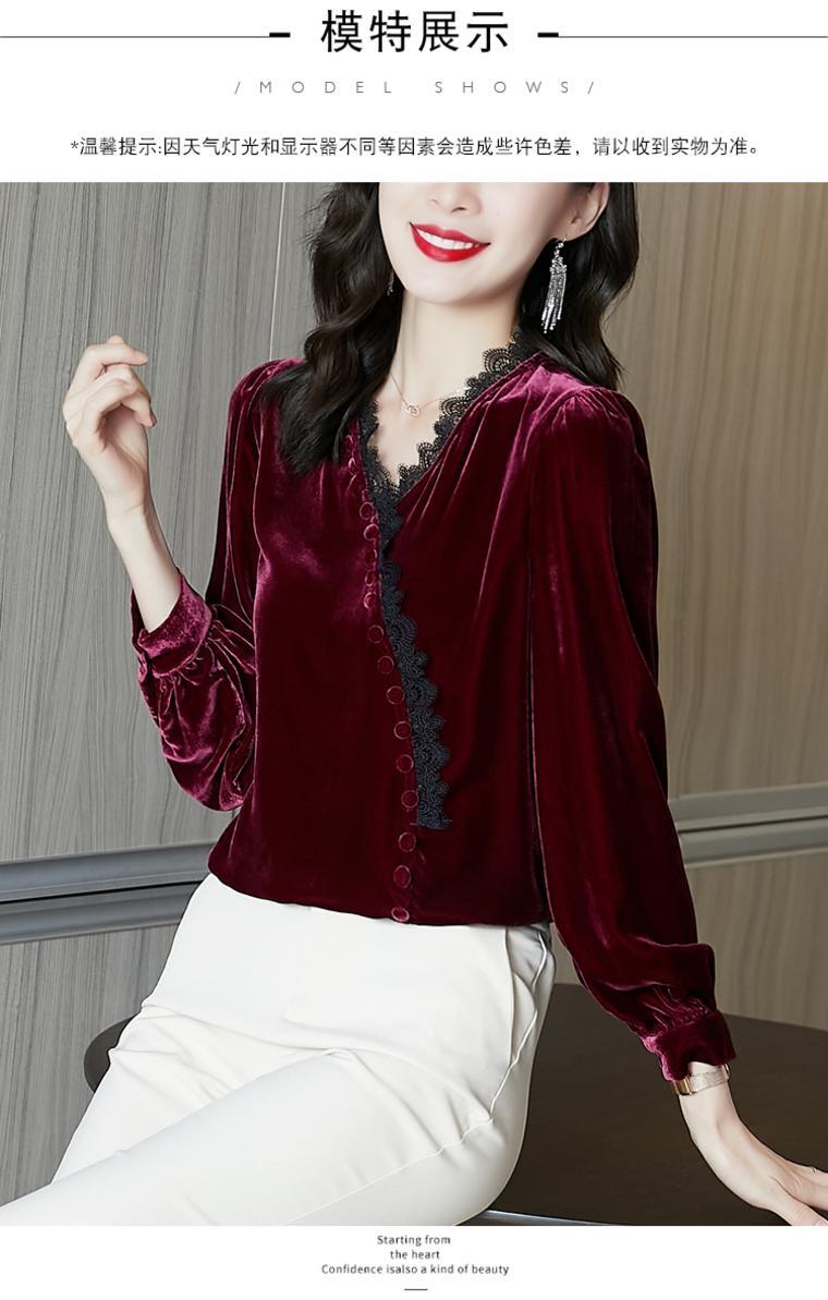 ゴールドベルベットシャツ オータムウィンタールーズレーストップス 大きめサイズ 秋物 冬物 muto23767285648