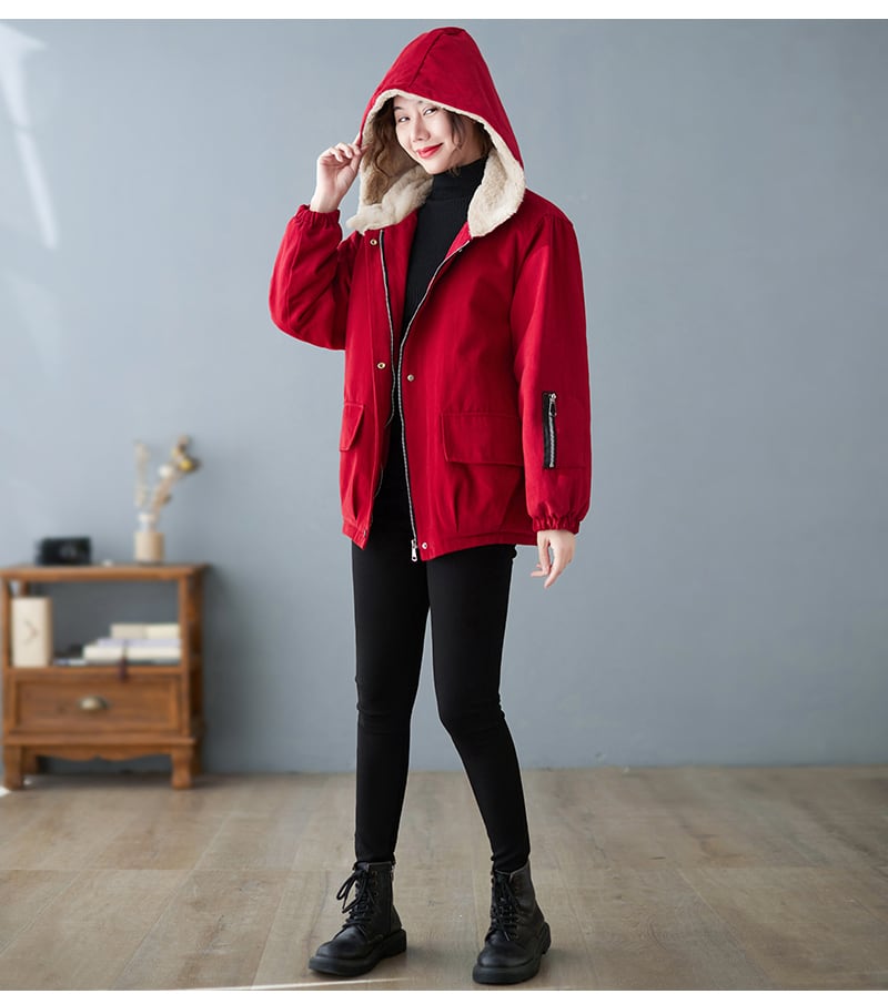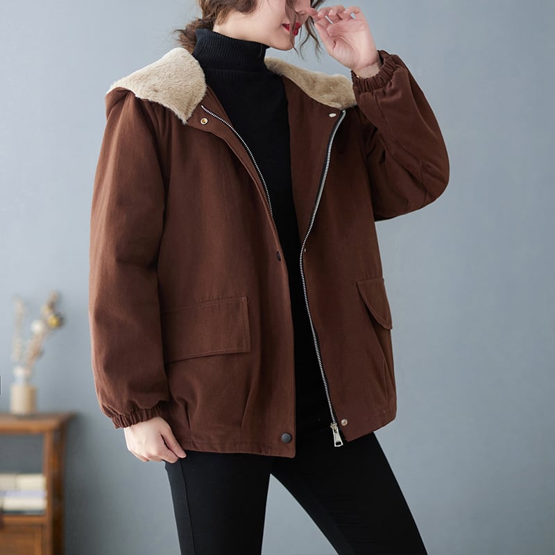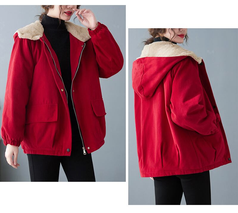 ベルベットウィンタールーズスタイルフードジャケット コットン 大きめサイズ 冬物 muto65909204658