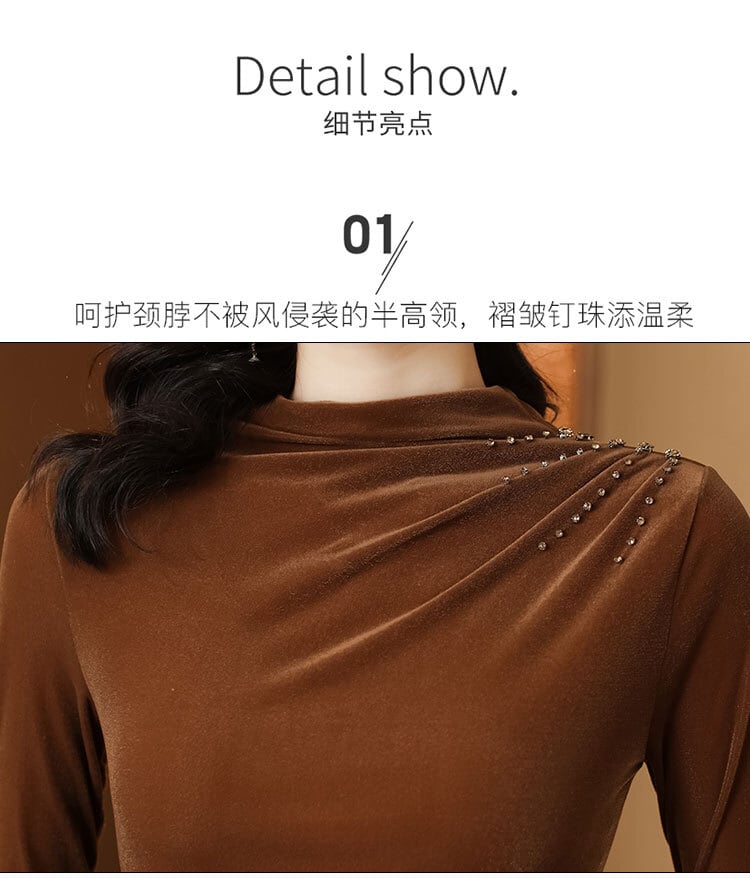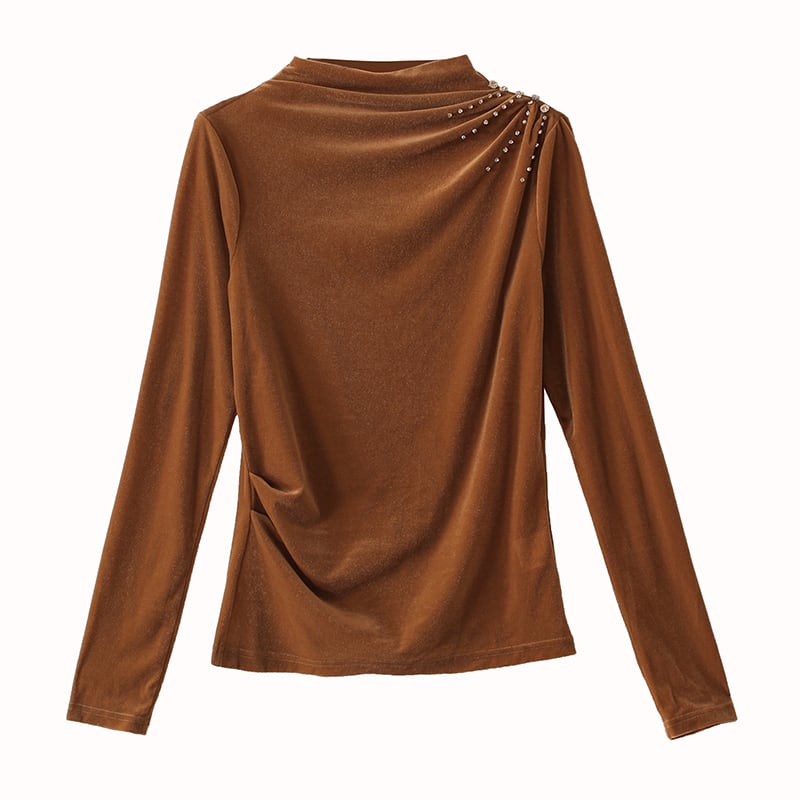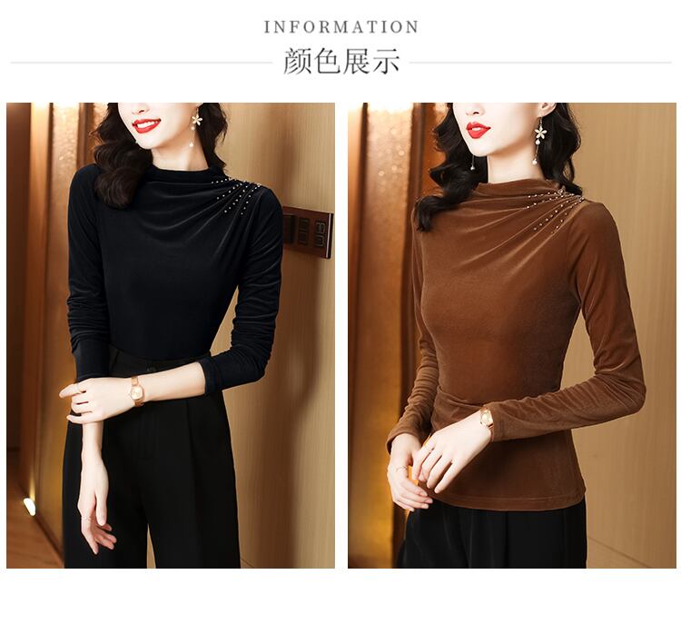 シャツ オータムウィンターゴールドベルベットスタイルトップス ロング 大きめサイズ 秋物 冬物 muto50688196853