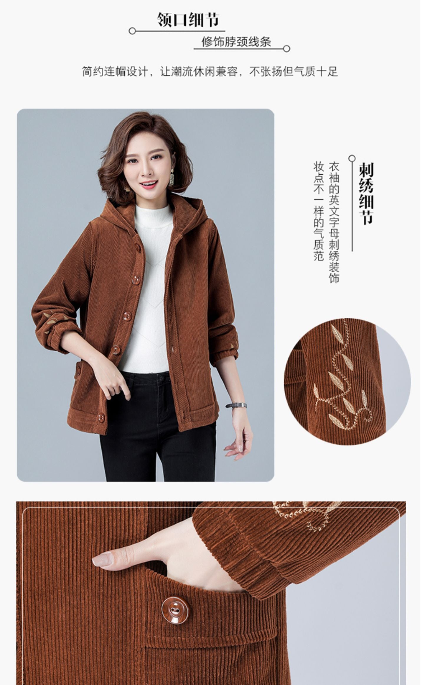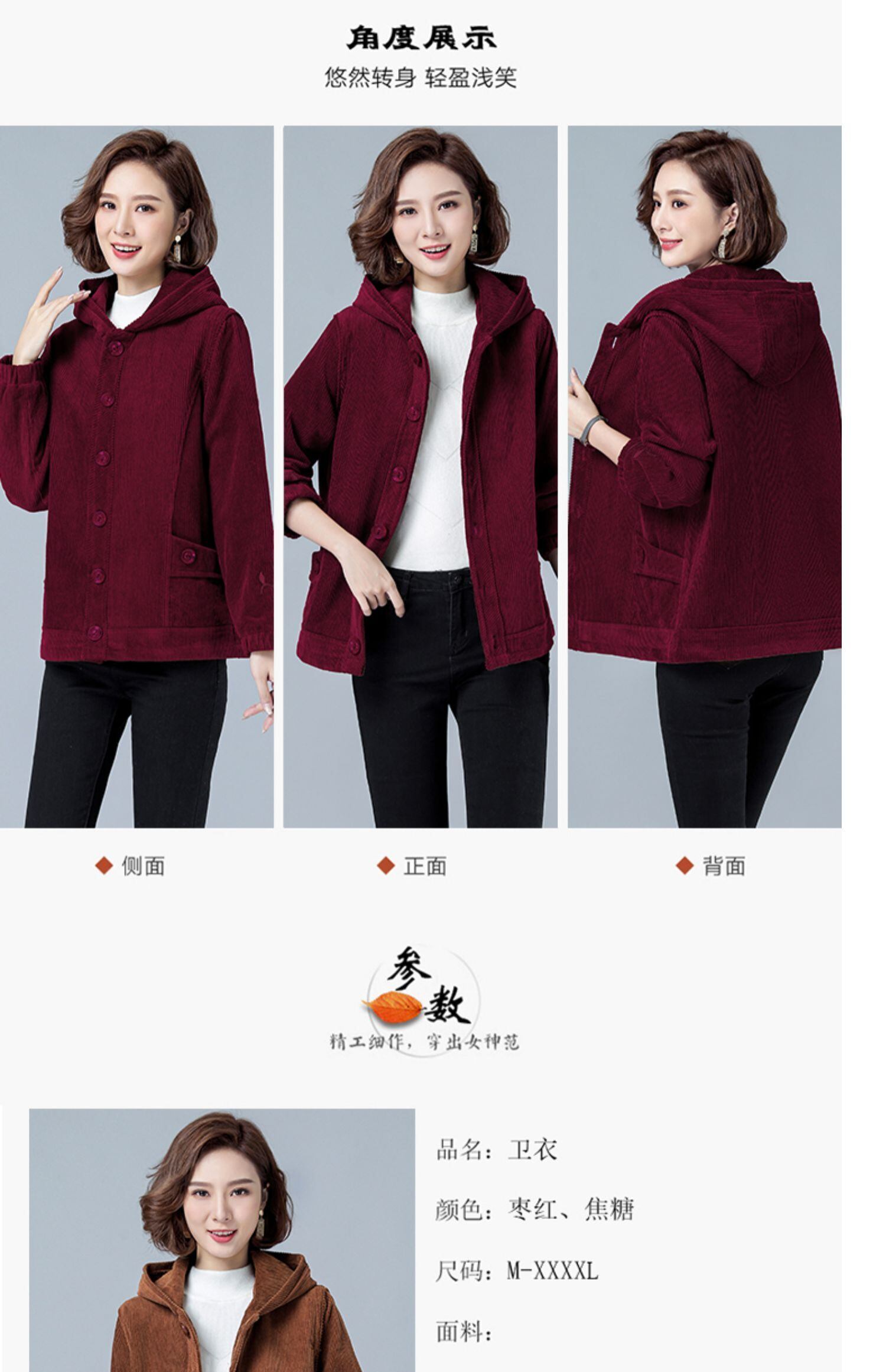 ベルベットコーデュロイジャケット ウィンター薄手ショート コットン 大きめサイズ 冬物 muto83552639954