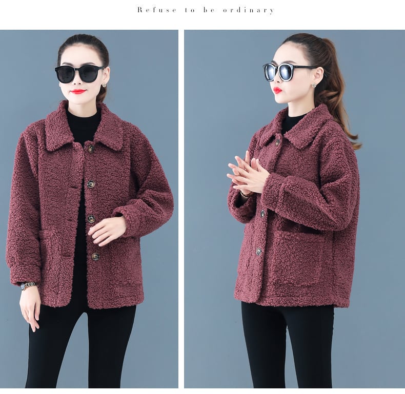 ウールショートコート オータムウィンター薄手ベルベットトップス 大きめサイズ 秋物 冬物 muto91356155345