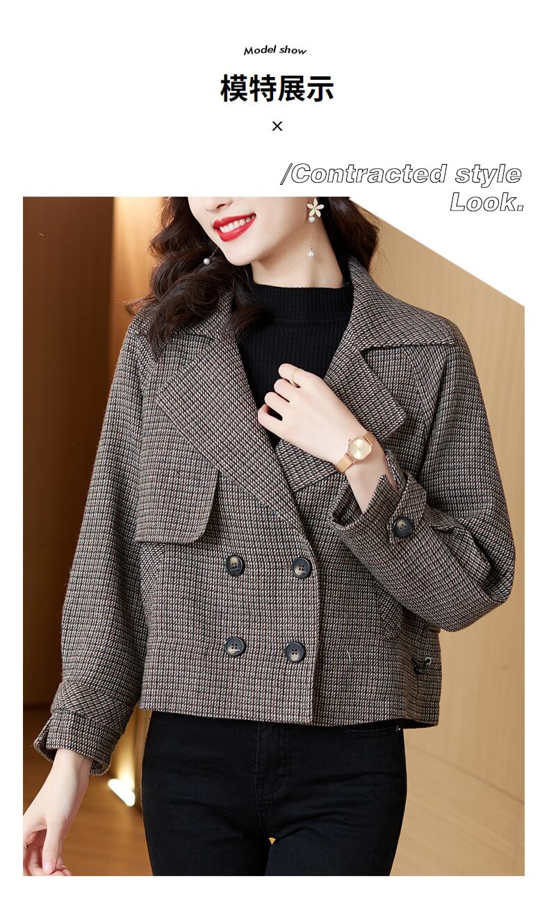 ダブルブレストコート オータム格子柄ショートトップス 大きめサイズ 秋物 muto70536547563