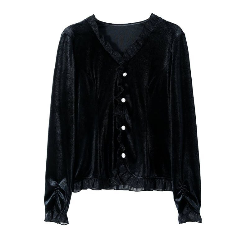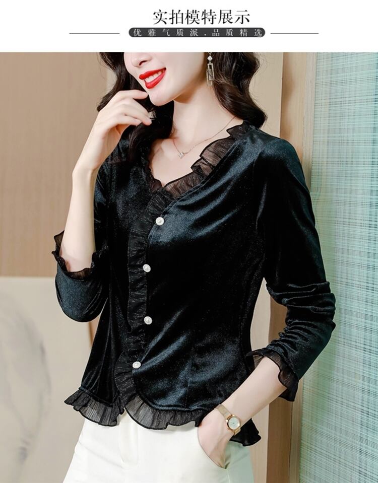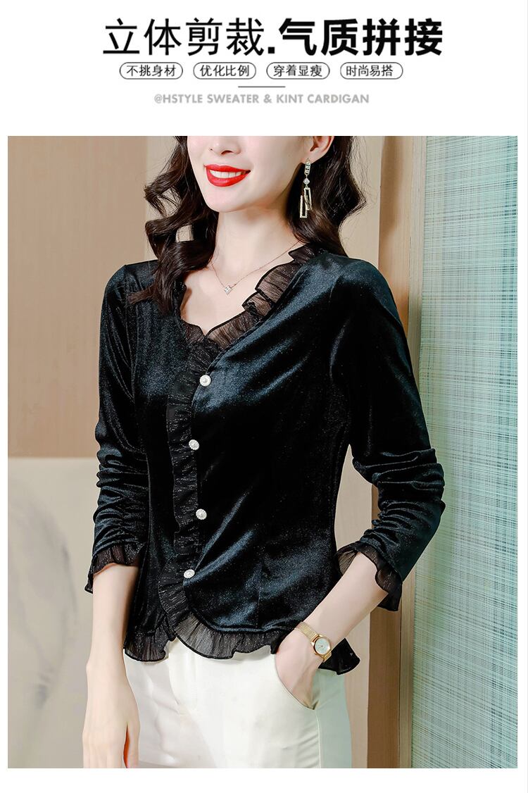 ブラックゴールドベルベットTシャツ シャツ オータムトップス ロング 大きめサイズ 秋物 muto51002622757