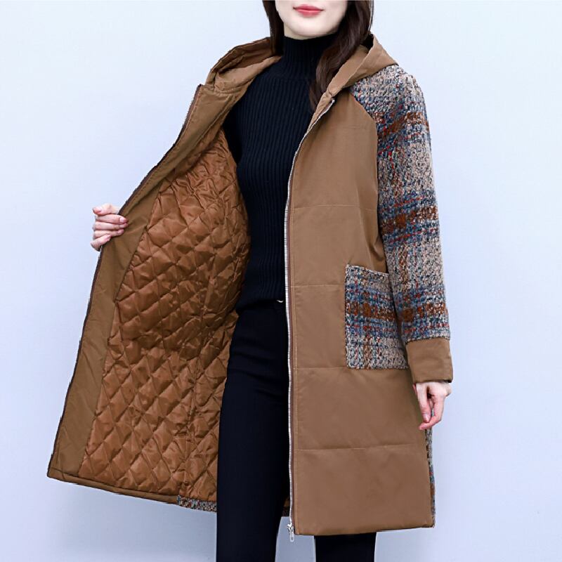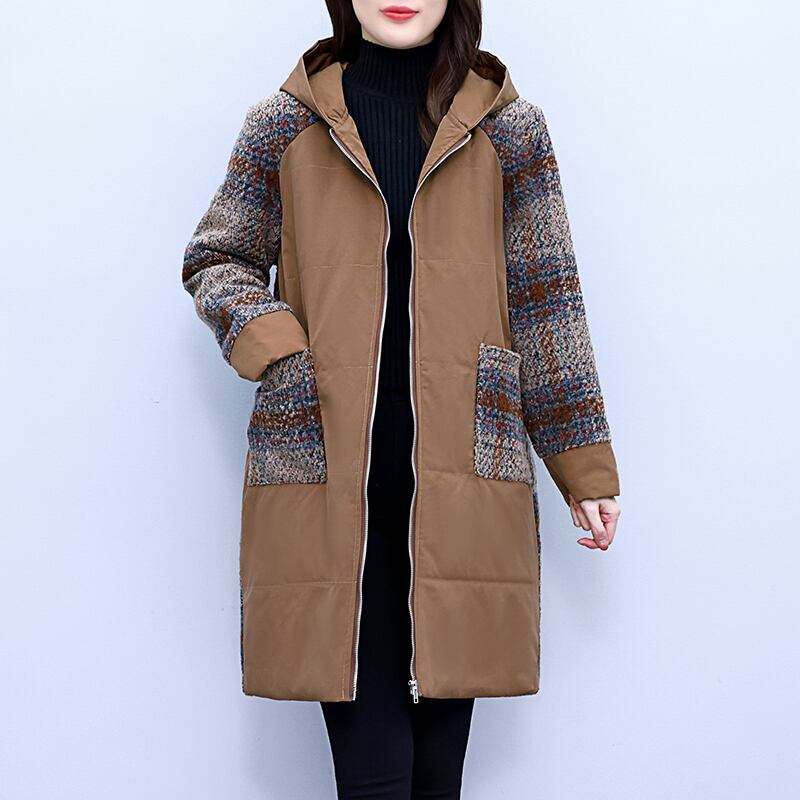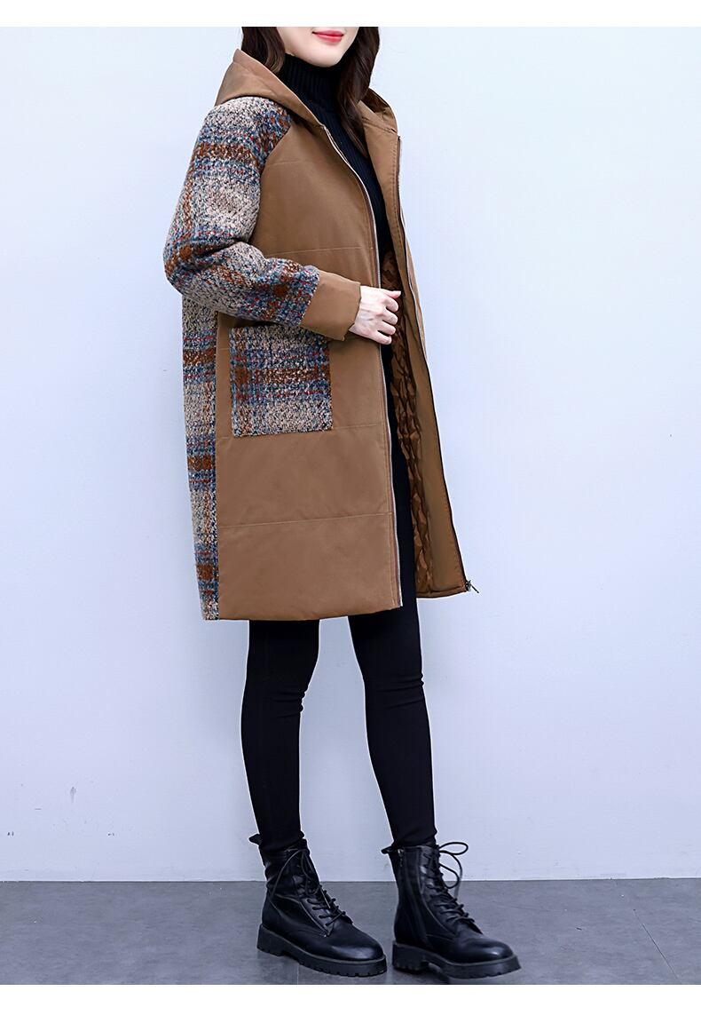 フード格子柄ウィンタールーズロングコート コットン 大きめサイズ 冬物 muto73857201534