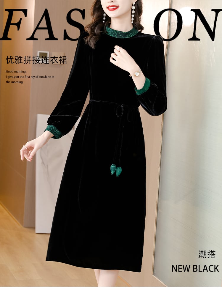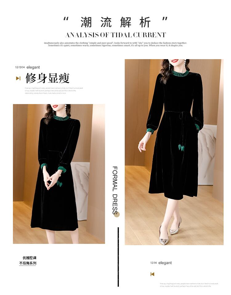ゴールドベルベットドレス オータムウィンタースタイル薄手スカート 大きめサイズ 秋物 冬物 muto15953557101