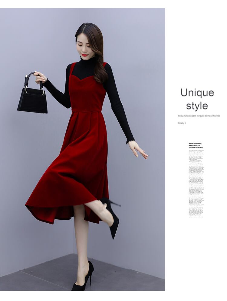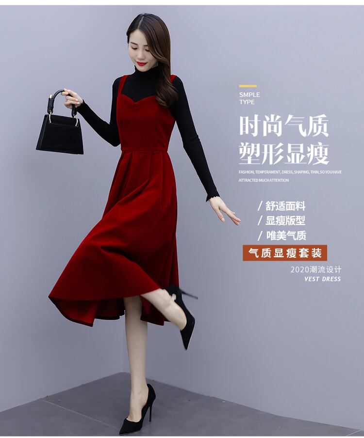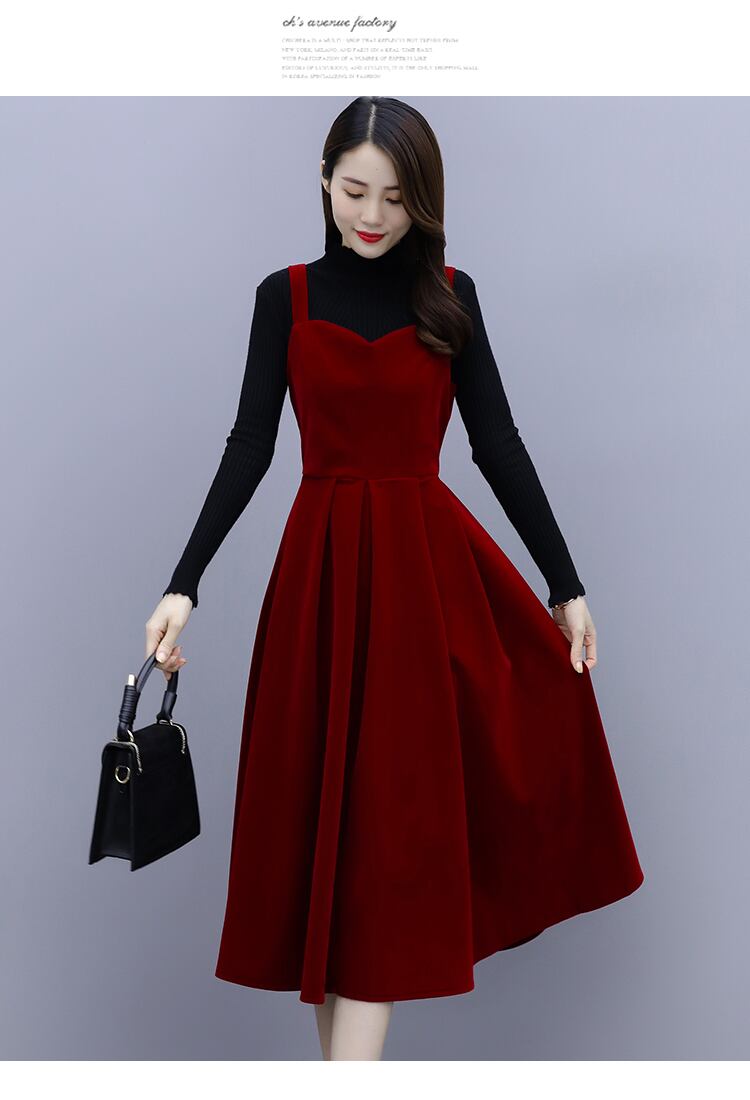 ゴールドベルベットドレス オータムウィンタースカート セット 大きめサイズ 秋物 冬物 muto82492763871