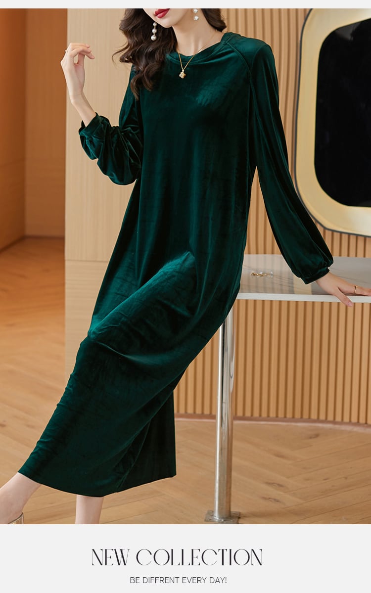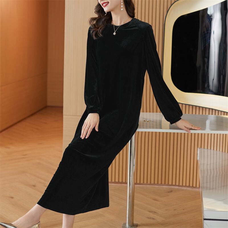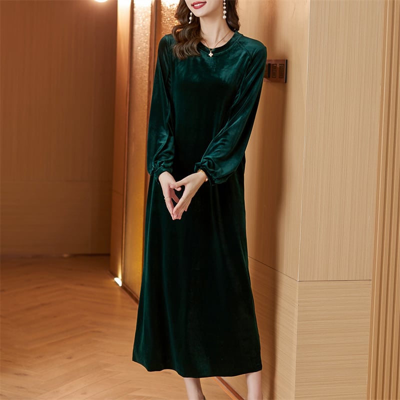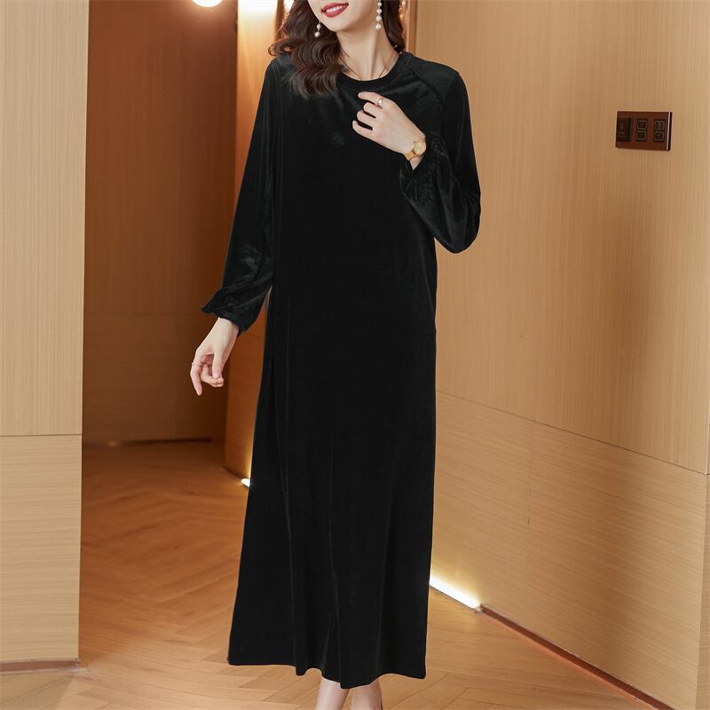 ゴールドベルベットドレス オータムウィンタールーズ薄手コート ロングスカート 大きめサイズ 秋物 冬物 muto2587264734