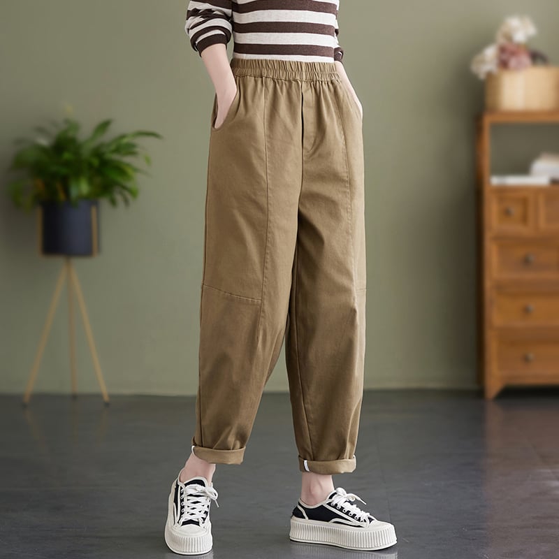 パンツ オータムルーズ薄手ハイウェストウェストストレッチカジュアル コットン エラスティック 伸縮 大きめサイズ 秋物 muto67908485886