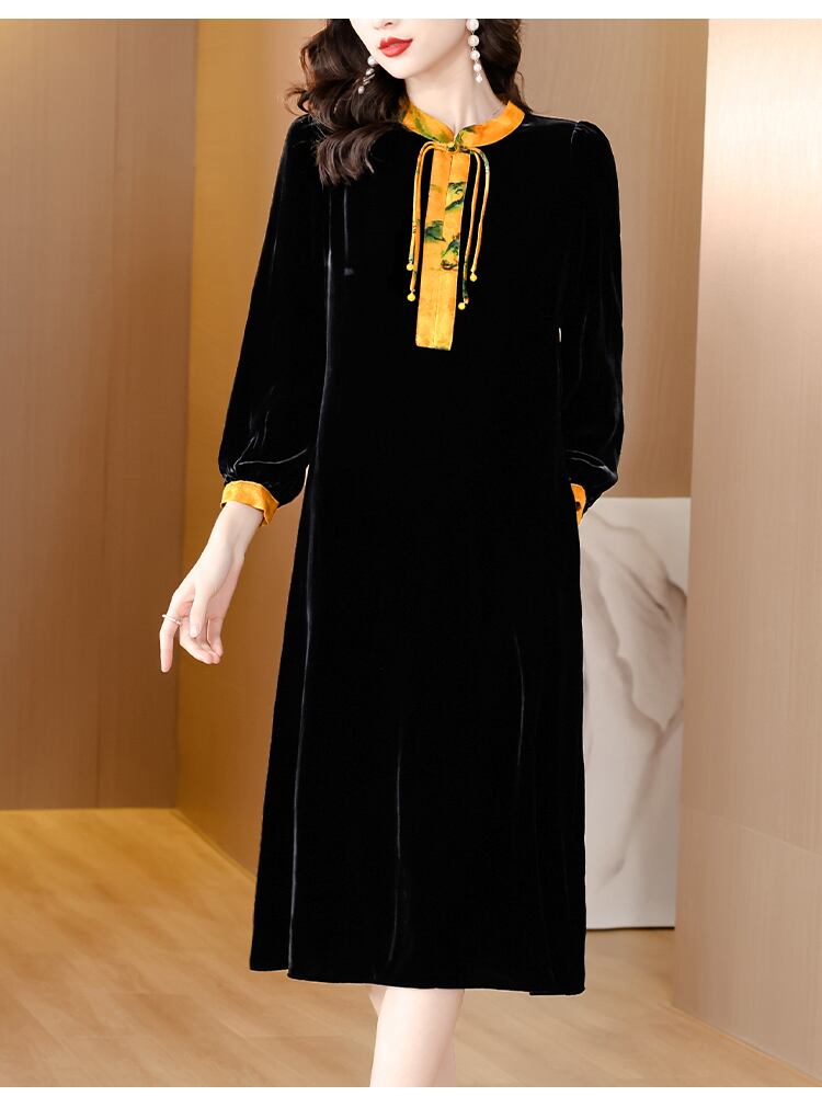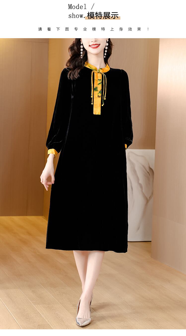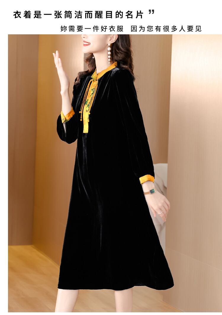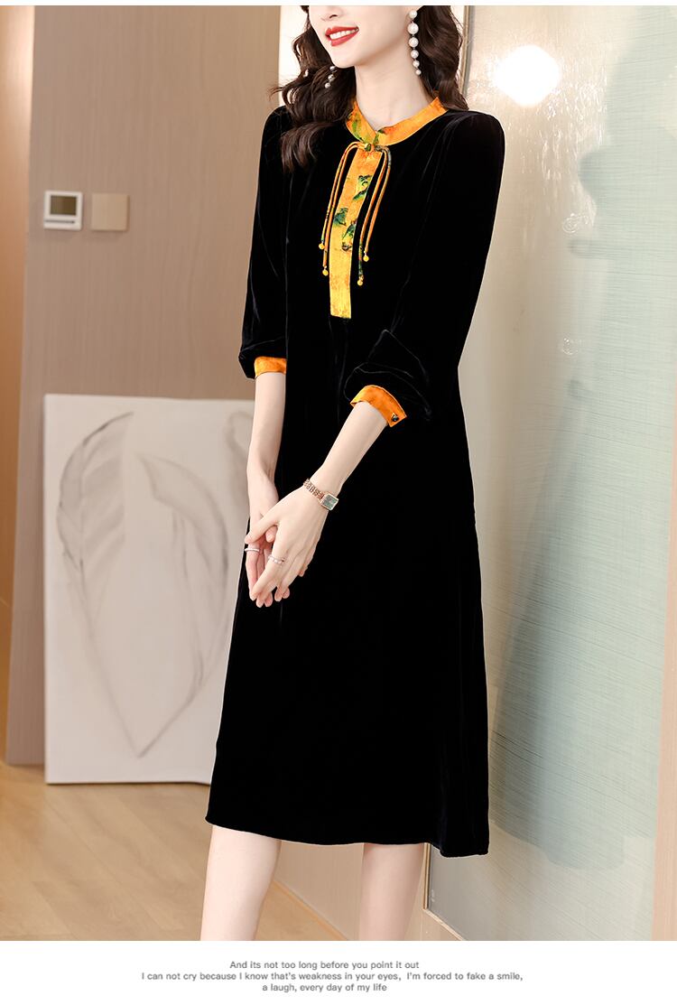 ゴールドベルベットドレス オータムウィンター薄手スタイルスカート 大きめサイズ 秋物 冬物 muto9046361683
