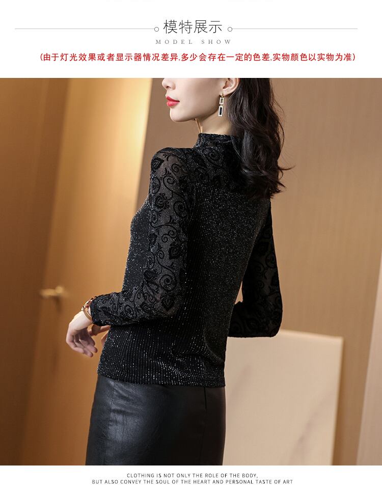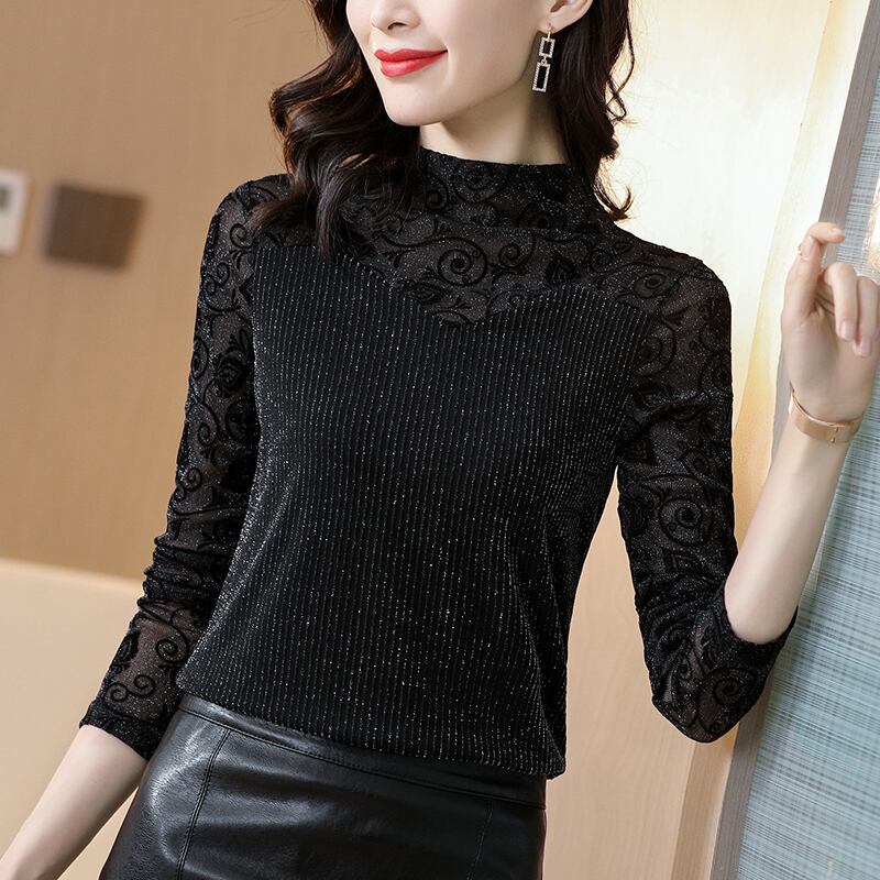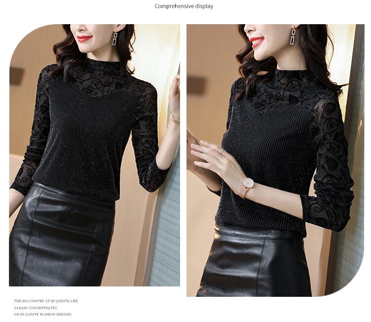 ベルベットシャツ オータムウィンター薄手メッシュレーストップス 大きめサイズ 秋物 冬物 シルク ステッチ muto4090523864