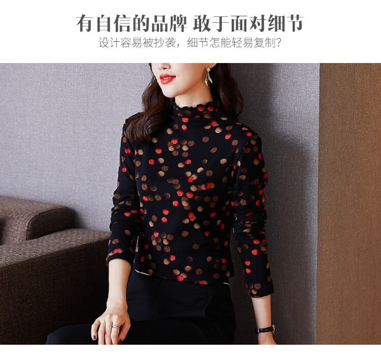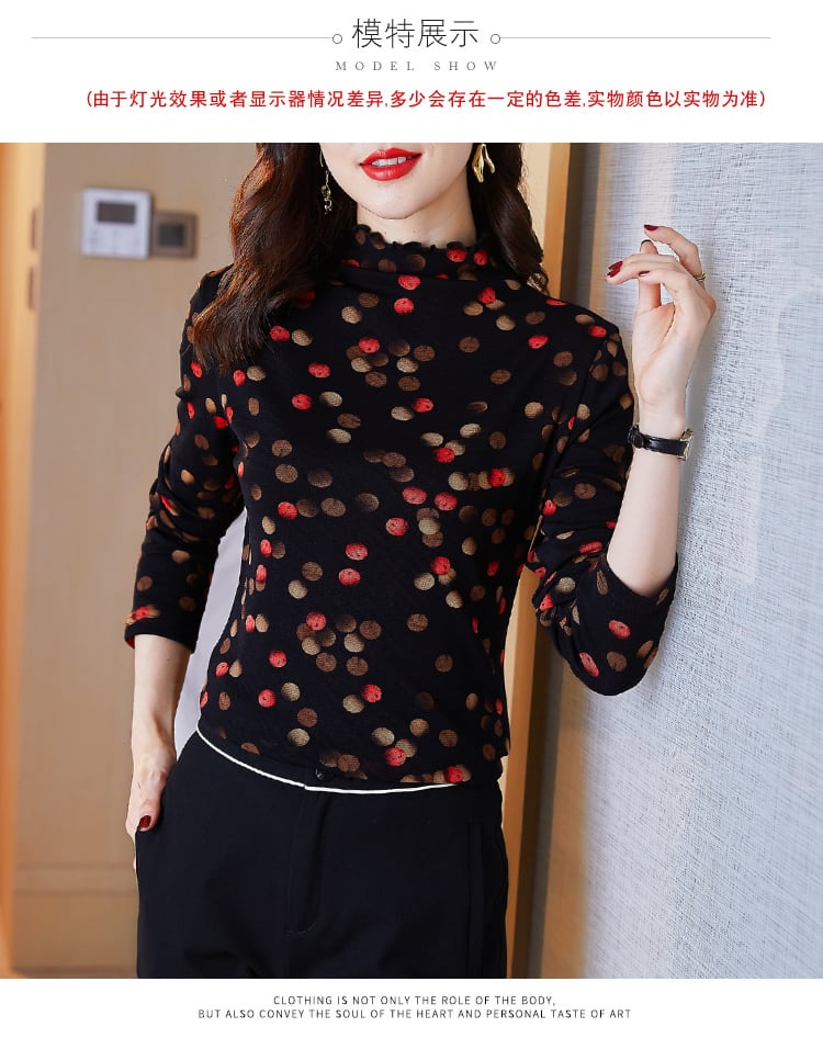 ベルベットプリントシャツ オータムウィンター水玉トップス 大きめサイズ 秋物 冬物 muto58370935995