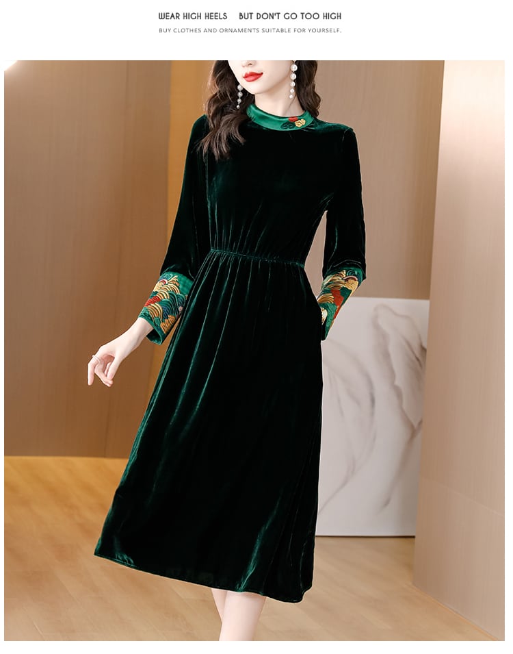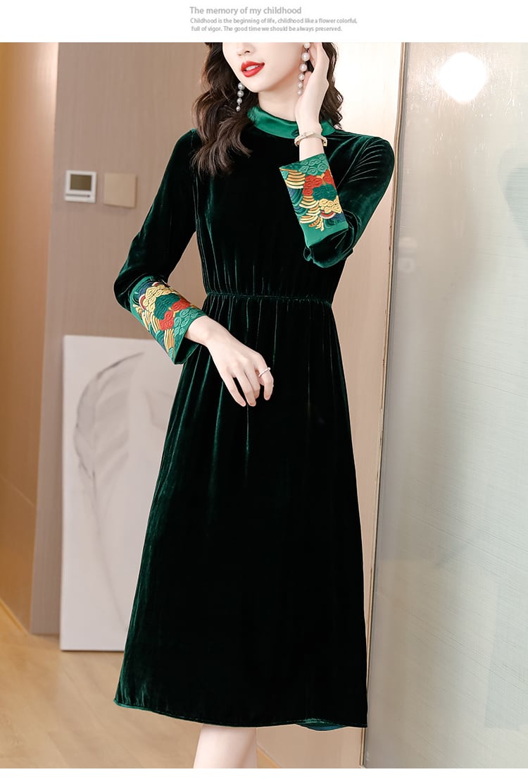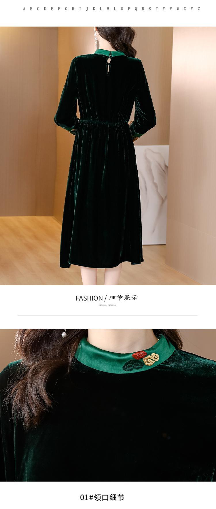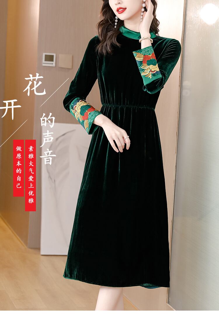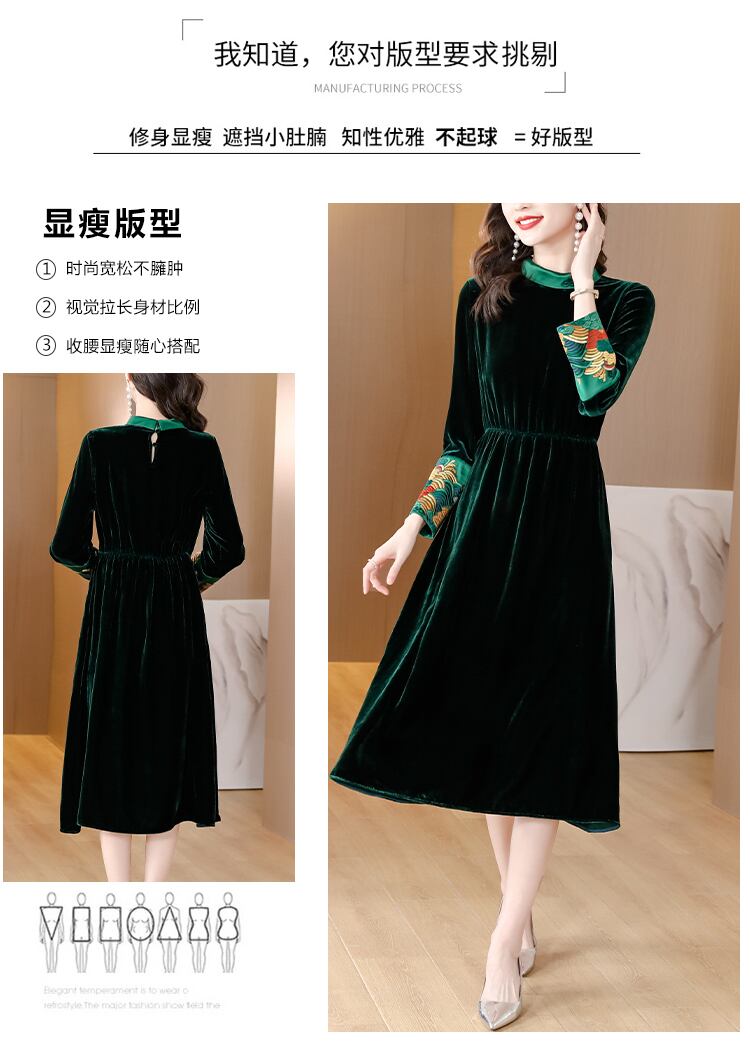 ベルベットドレス オータムウィンタースタイルウェスト薄手Aラインスカート 大きめサイズ 秋物 冬物 muto23615856083