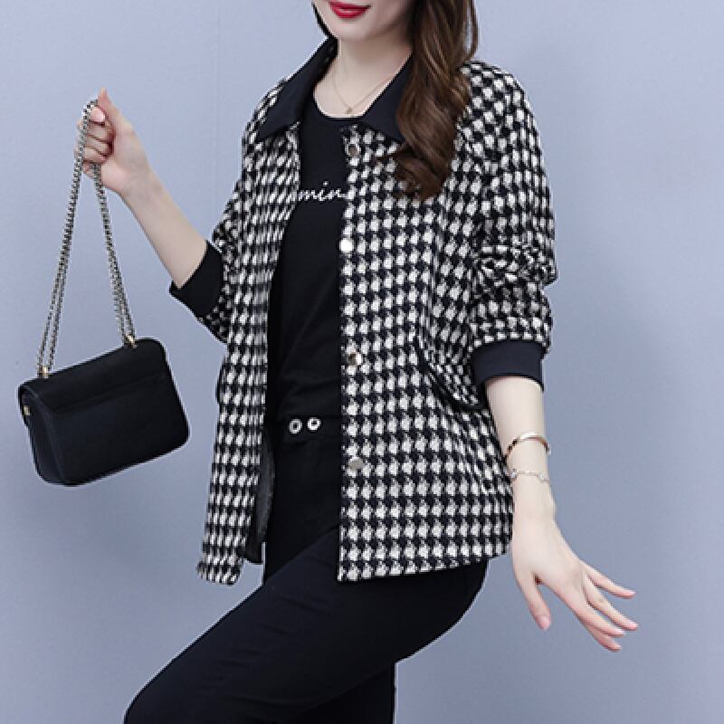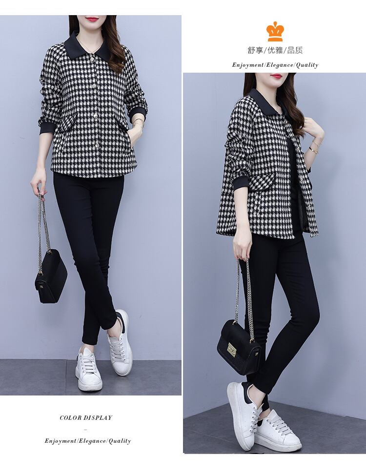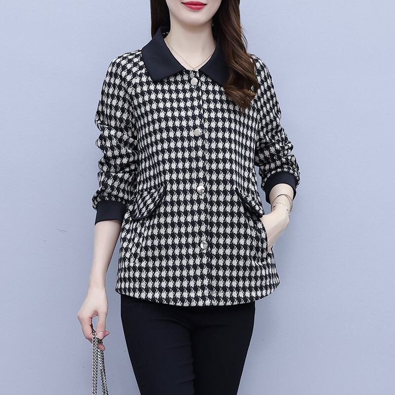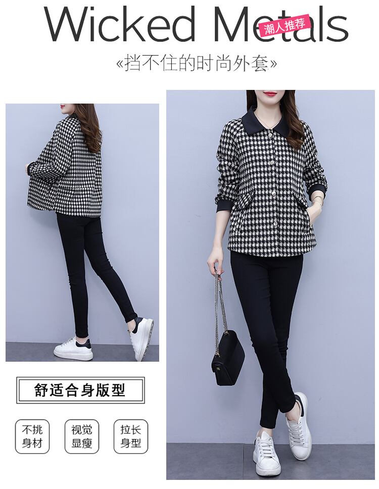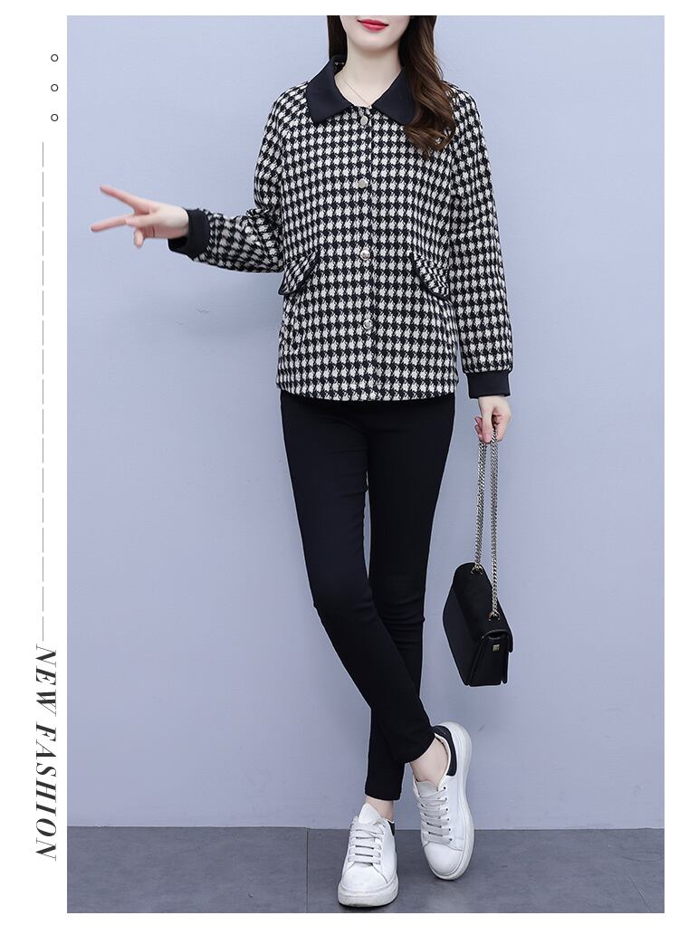 オータムコート ウィンタースタイルショート格子柄トップス 大きめサイズ スプリング 春物 秋物 冬物 muto28689777160