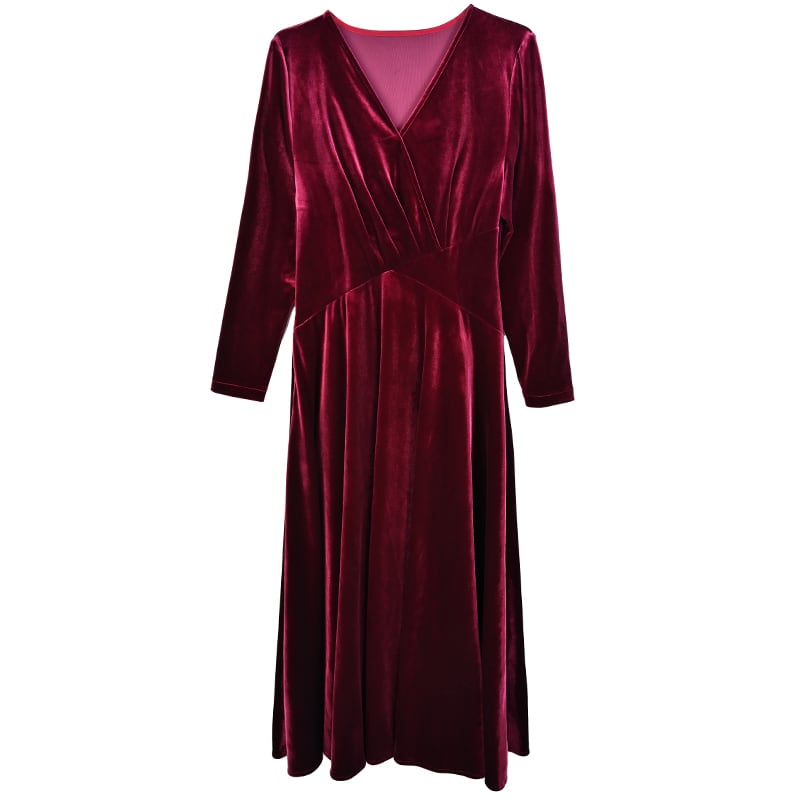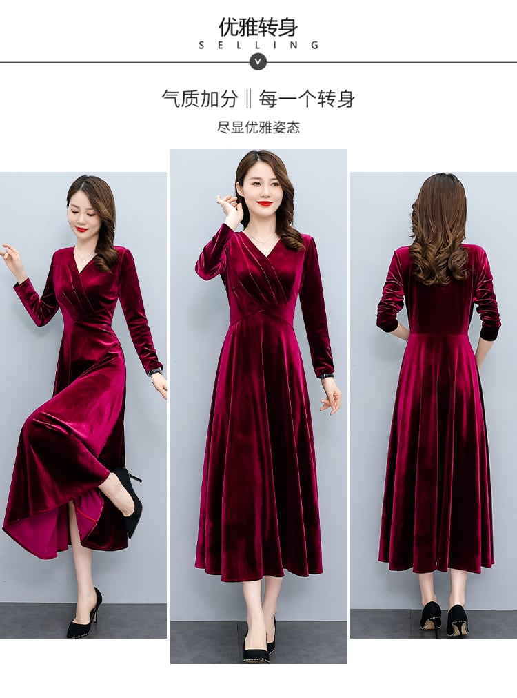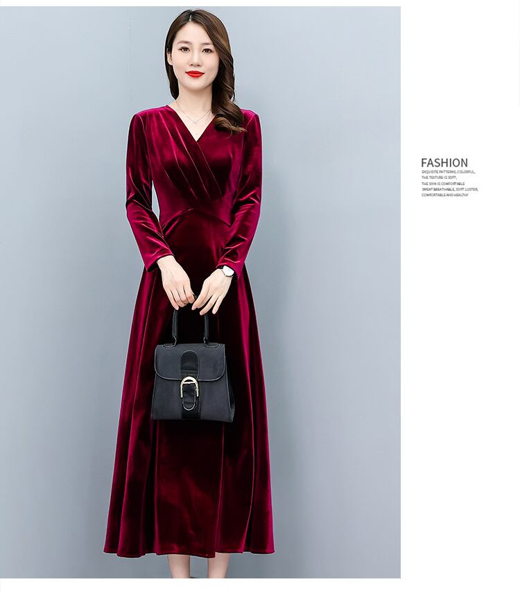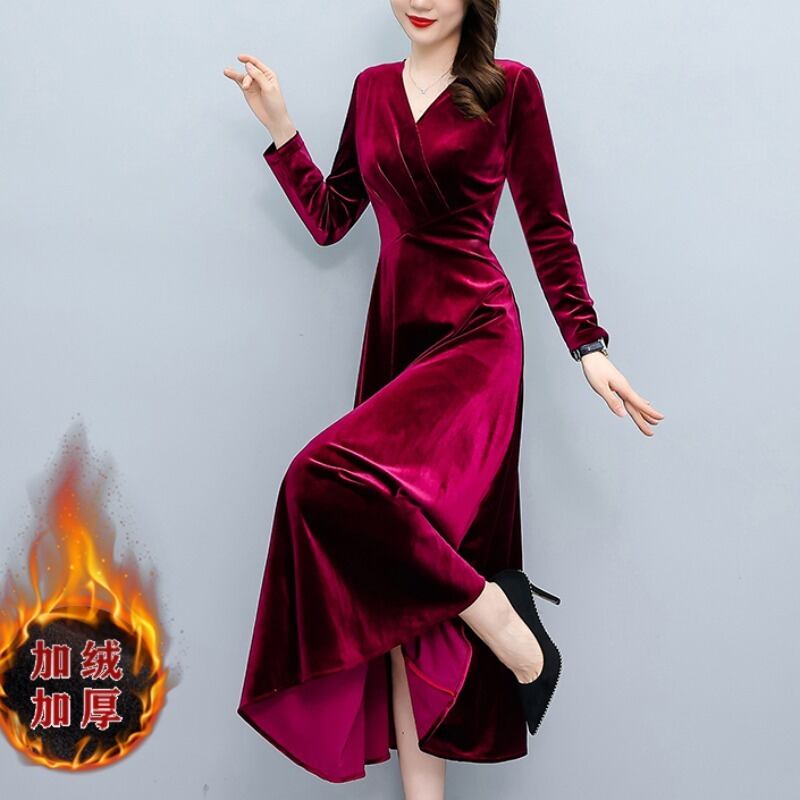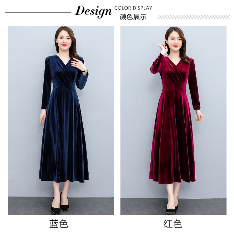 ベルベットゴールドドレス オータムウィンターウェスト薄手ロングスカート 大きめサイズ 秋物 冬物 muto48708274078