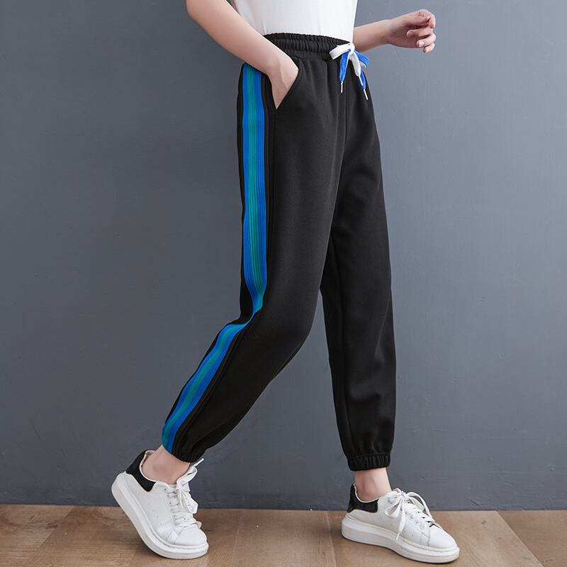 ストライプレギンス パンツ 薄手オータムルーズカジュアルサイド 大きめサイズ 秋物 muto2146955527