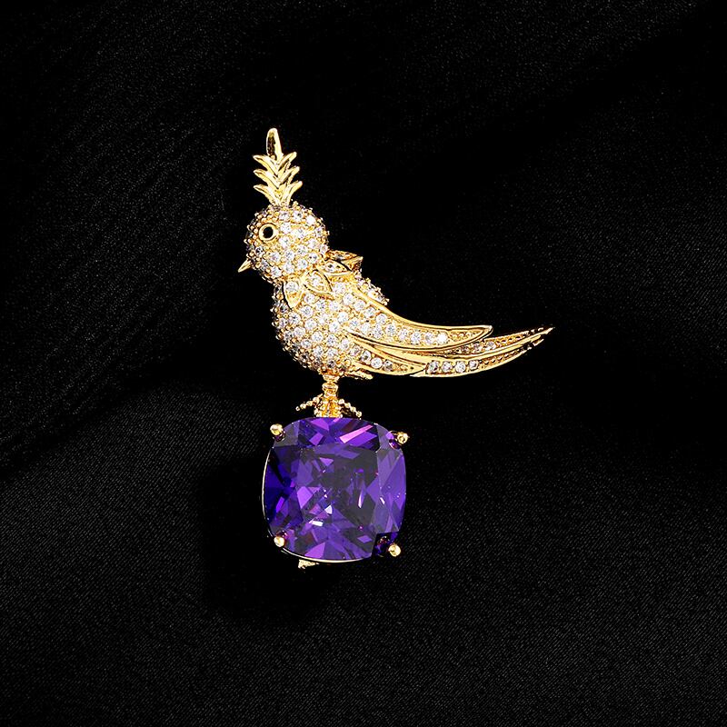 石の上の感覚鳥ハイエンドクリスタルブローチ男性と女性の気質スーツネックライン絶妙なニッチピンシャオザンアクセサリー shipin73384710775