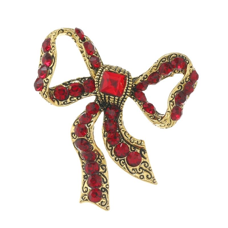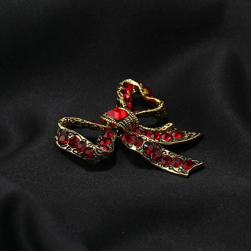 ニッチな高級感フレンチエレガントなリボンブローチ赤いレトロな気質ピン女性の絶妙なスーツのコサージュ潮 レッド shipin37687328777