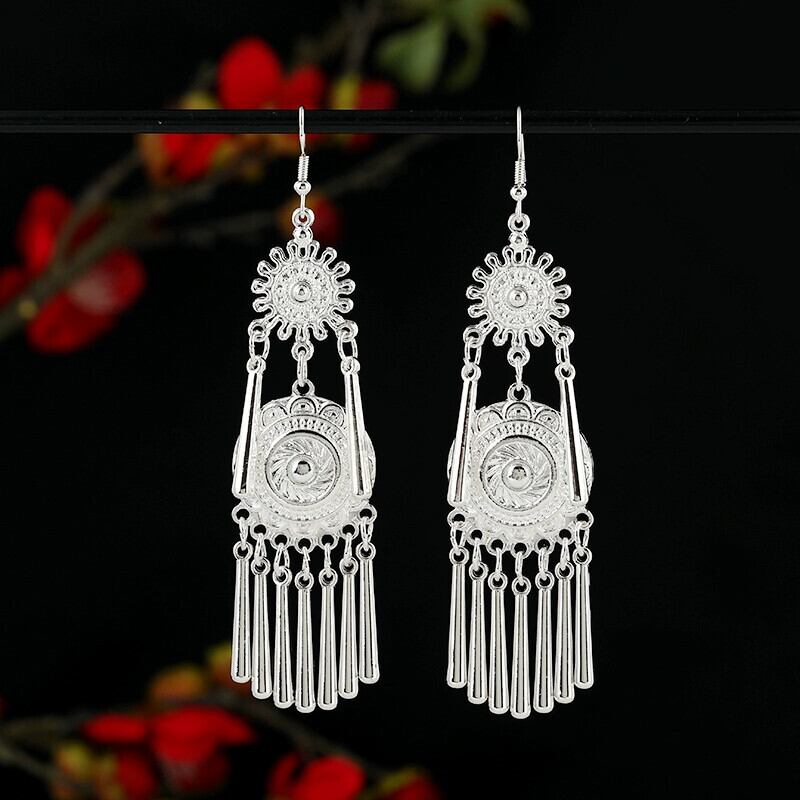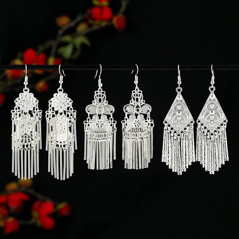 エスニックスタイルミャオ族シルバーイヤリングレトロエキゾチックニッチデザインロングテルイヤリング中国風の新しい中国風のイヤリング女性 指輪 銀 shipin73448309168