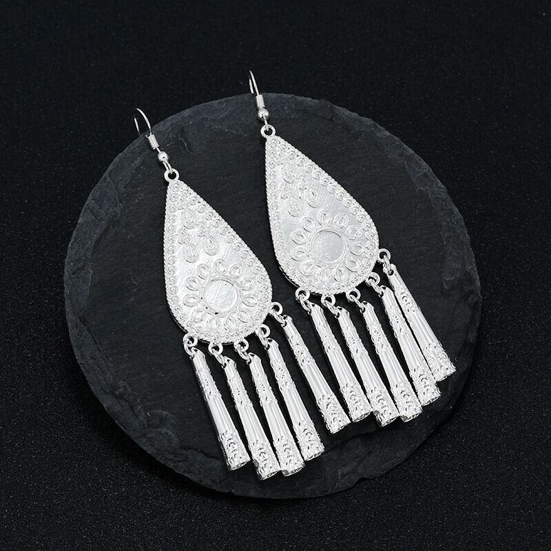 中国風エスニックスタイルミャオ族シルバーイヤリング女性のレトロニッチハイエンドセンスロングテルイヤリング国民風のホリデーイヤリング 指輪 銀 shipin36593057453