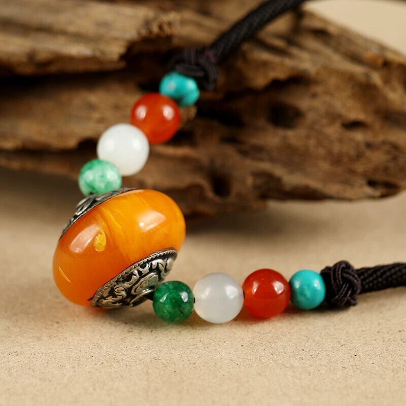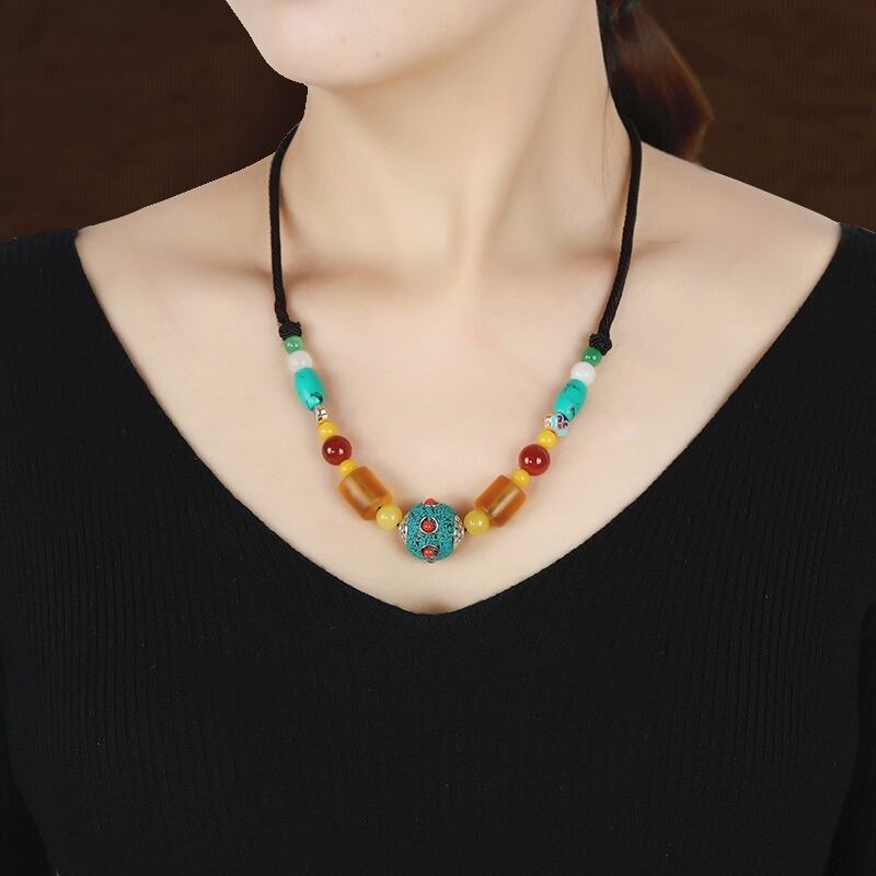 レトロなオリジナルエスニックスタイルチベットショートネックレス女性らしさ人格ネパール蜜蝋アクセサリーペンダント鎖骨チェーン レース shipin45439261546