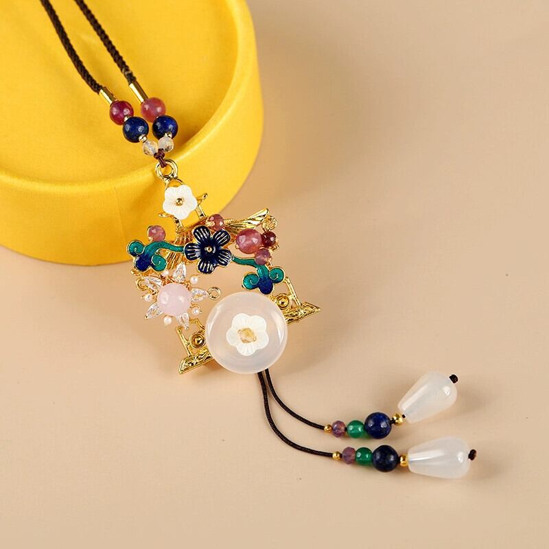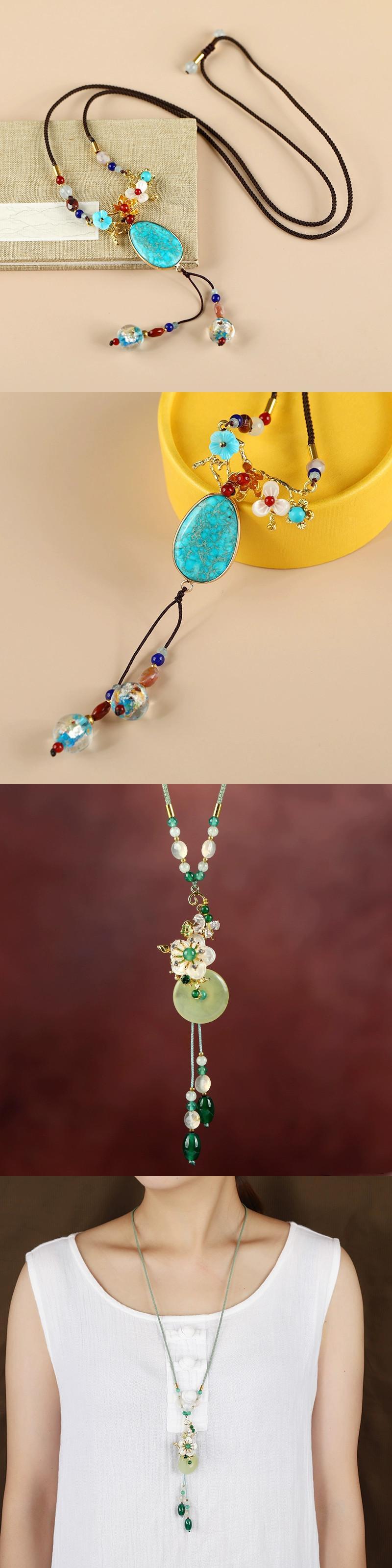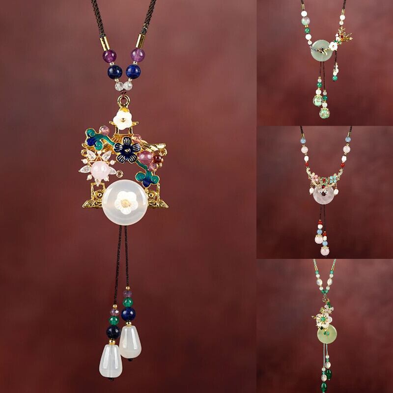 ニッチ手作りエスニックスタイルクリスタル翡翠ロングネックレスレトロシンプルな多用途セーターチェーンエンドオーナメント レース ジェード ヒスイ shipin33404415618