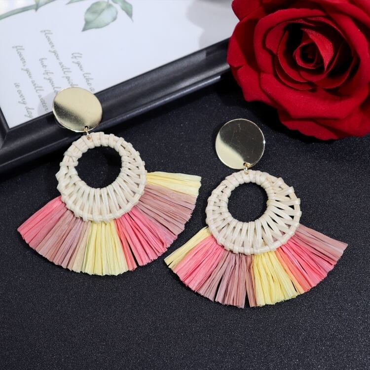 ヨーロッパとアメリカのレトロな休暇籐ラフィアイヤリング女性の気質ビーチイヤリング個性イヤリング手作りイヤリング 指輪 ヨーロピアン shipin41882414494