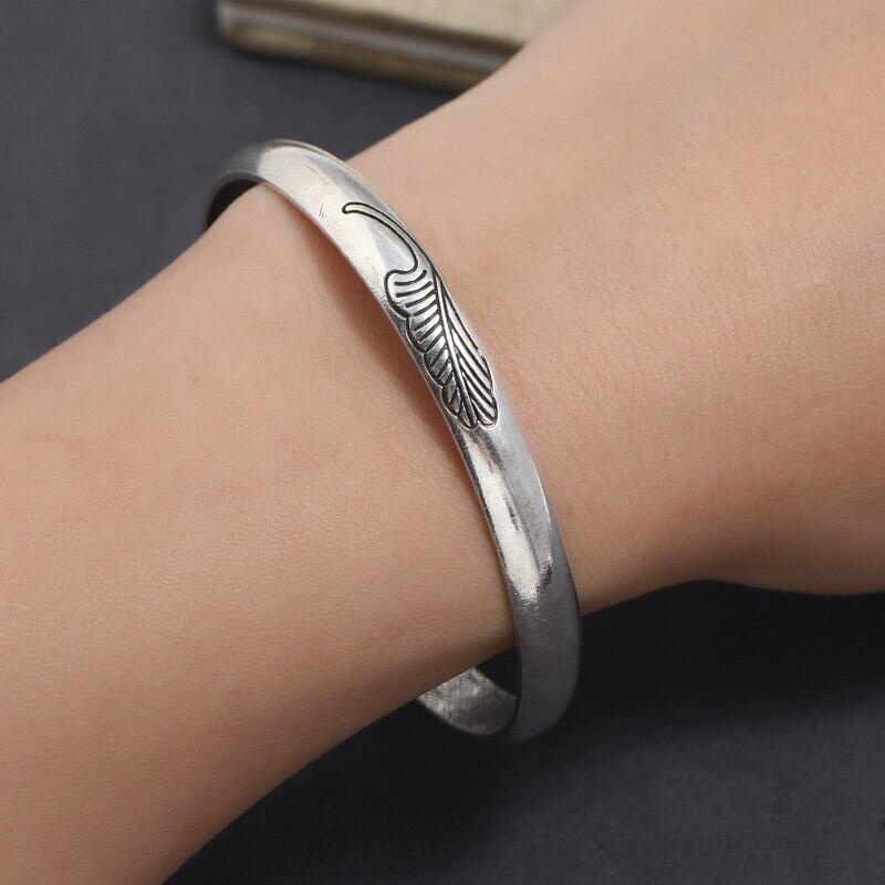 レトロな古葉チベット模造タイシルバーブレスレット男性と女性のカップルオールマッチシンプルなブレスレットエスニックスタイルアクセサリー 銀 shipin69805629193