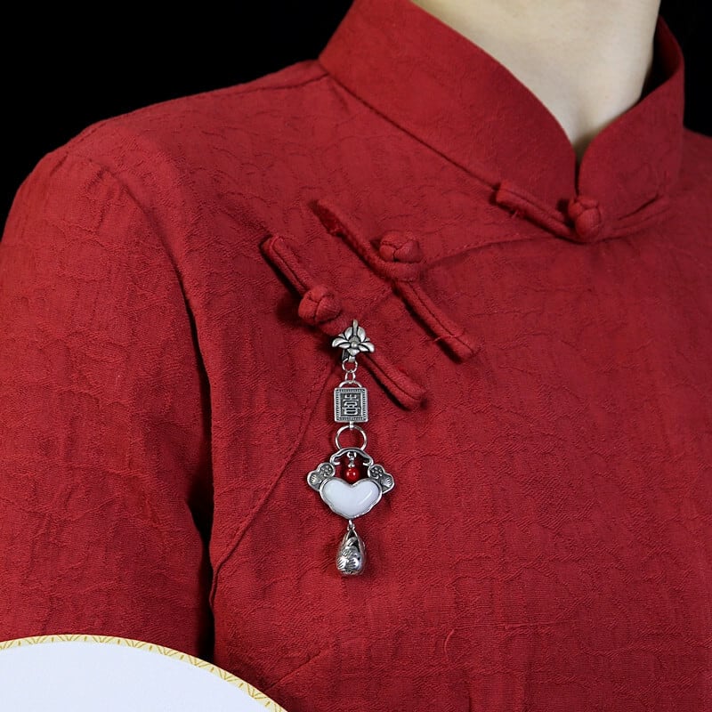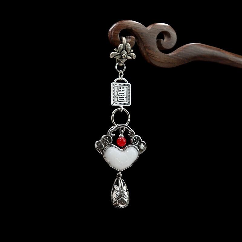 満足如意チャイナプレスボタンペンダント中国風のレトロなチベットシルバー電話ペンダント女性の絶妙な韓服アクセサリー 銀 shipin59586320331