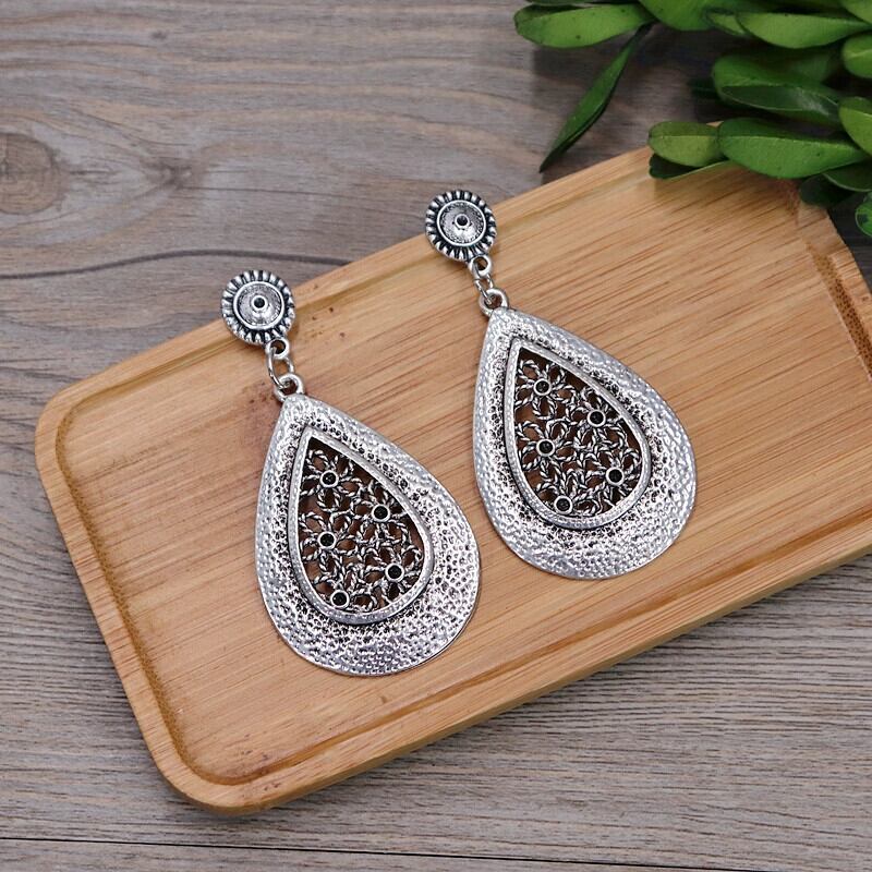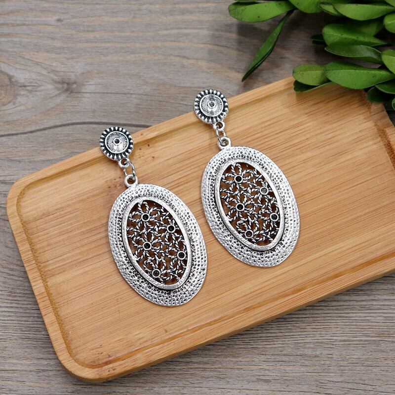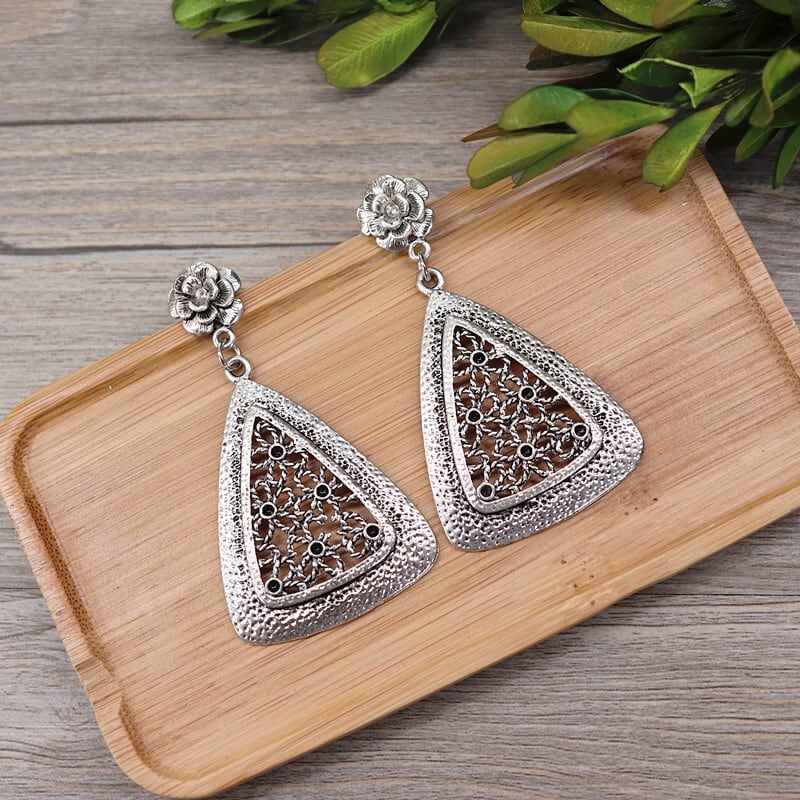 レトロエスニックスタイルチベットシルバーフラワースタッドピアス幾何学的なロングスタイル個性中空イヤリング多用途ホリデーイヤリング 指輪 フラワーデザイン 銀 shipin63830665936