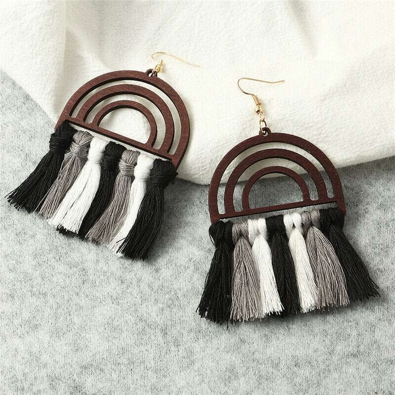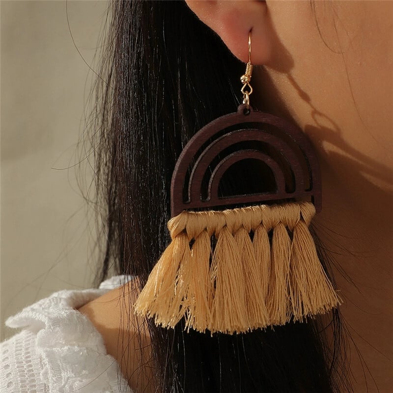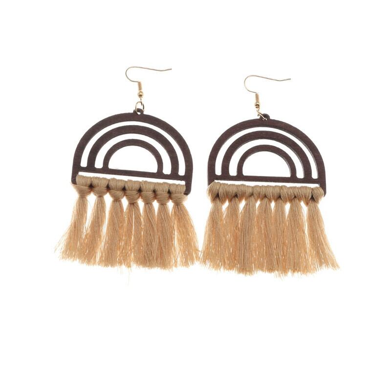 ヨーロッパとアメリカのボヘミアンエスニックスタイル木製レインボーテルイヤリング個性レトロ誇張された休暇旅行イヤリング女性 指輪 ヨーロピアン shipin97149702097
