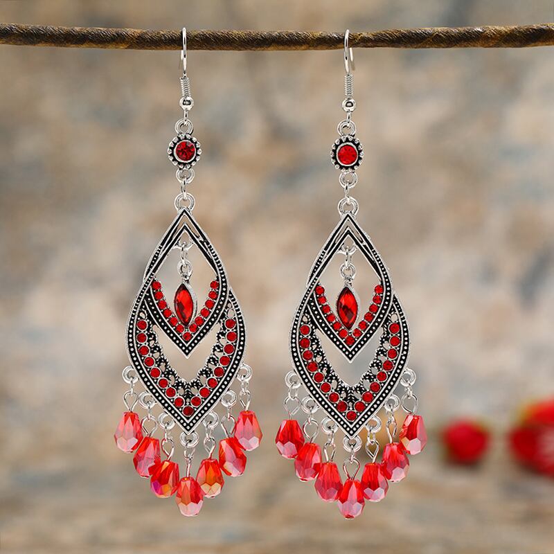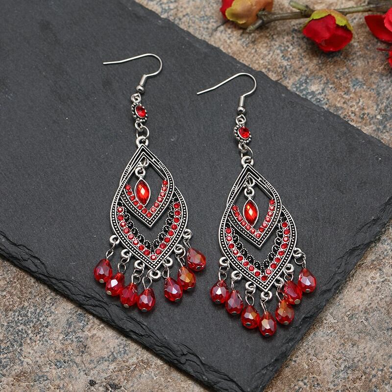 エスニックスタイルレトロロングセクションフェミニンな気質セレブ電話イヤリングファッション誇張された雰囲気ショーフェイス薄いクリスタルイヤリング 指輪 shipin7449039453