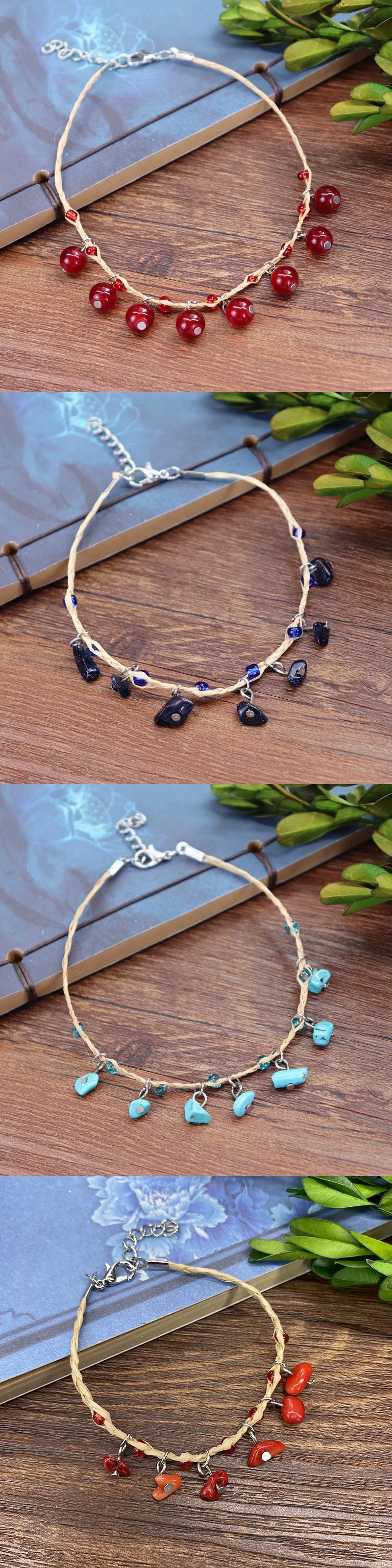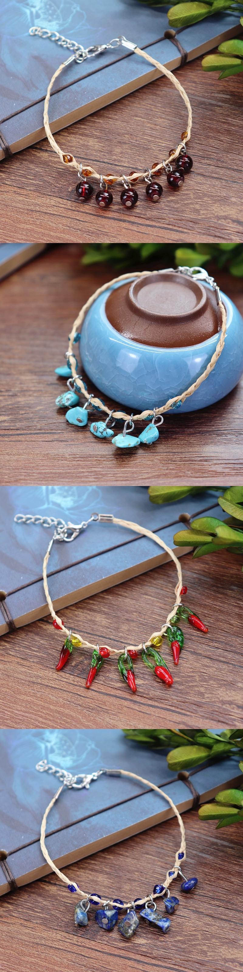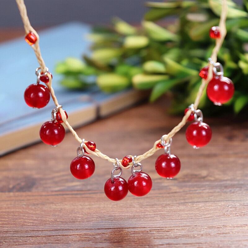 レトロ森美しいラフィアオールマッチブレスレット女性の小さな新鮮なベルチェリーハンドロープエスニック風アンクレットジュエリー shipin15622586383
