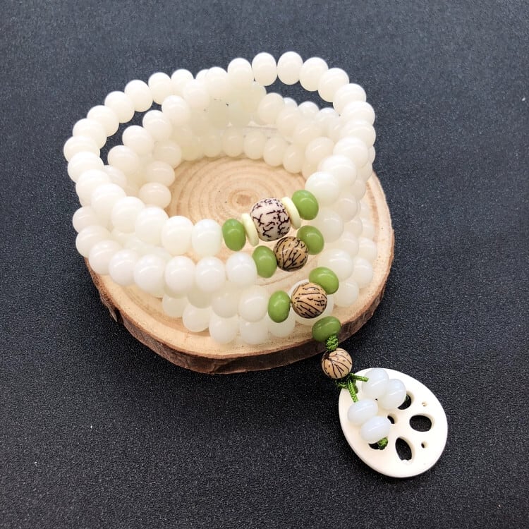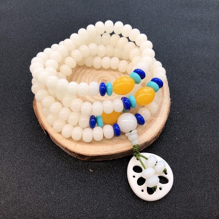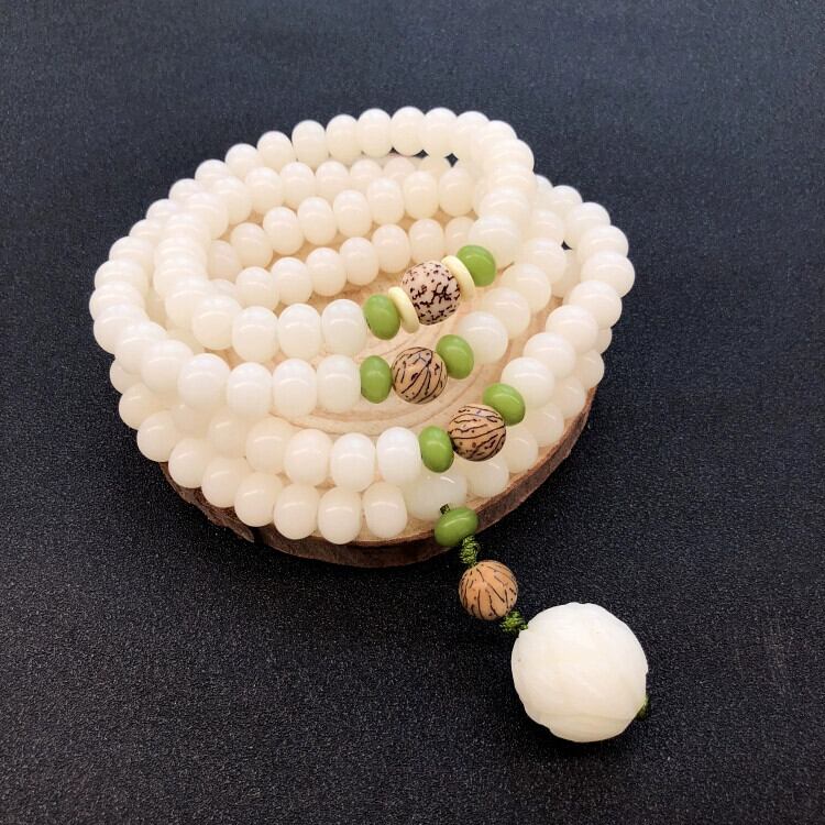 白翡翠菩提根ブレスレット 108 菩提種子仏ビーズネックレス男性と女性の多用途ブレスレットロングシンプルな Wenwan アクセサリー ホワイト レース ジェード ヒスイ shipin57736668450
