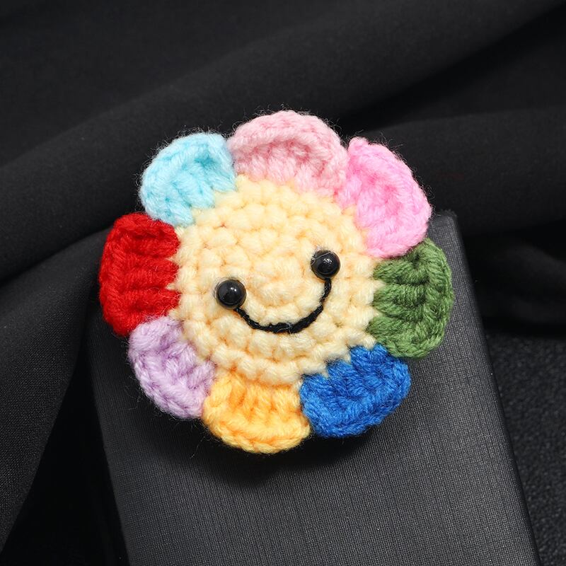 手編みウールレインボーひまわりブローチ男性と女性かわいいエサコサージュ装飾ピンクリエイティブトレンディな個性 大人ガーリー スウィート キュート カジュアル フラワーデザイン shipin84706771603