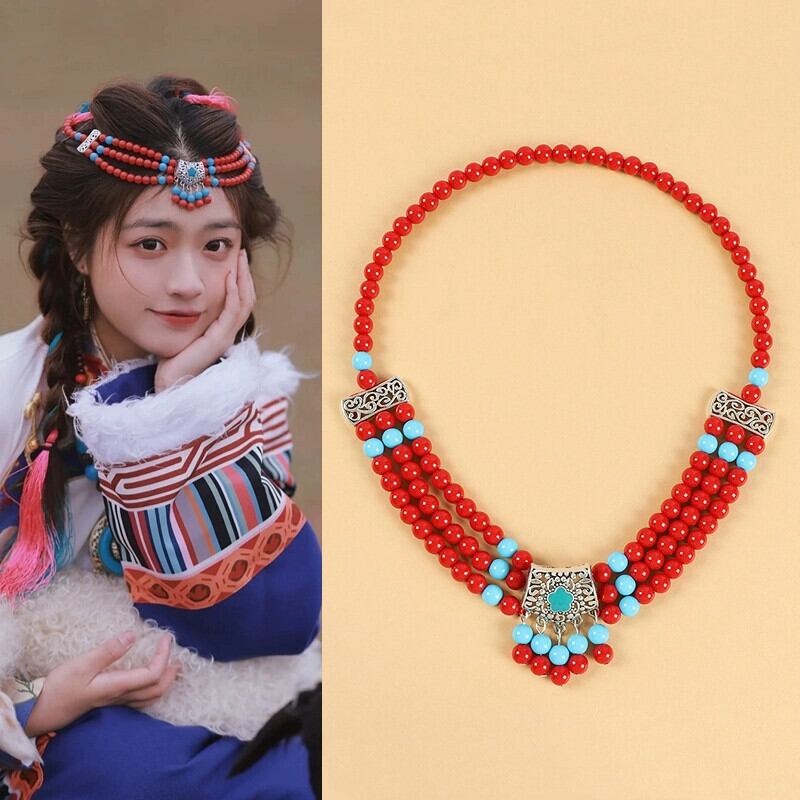 エスニックスタイルチベット ehead 装飾レトロエキゾチックな風 ehead チェーンチベット青海ポーダンス眉毛ハートペンダントチベット衣装頭飾り shipin79929715452
