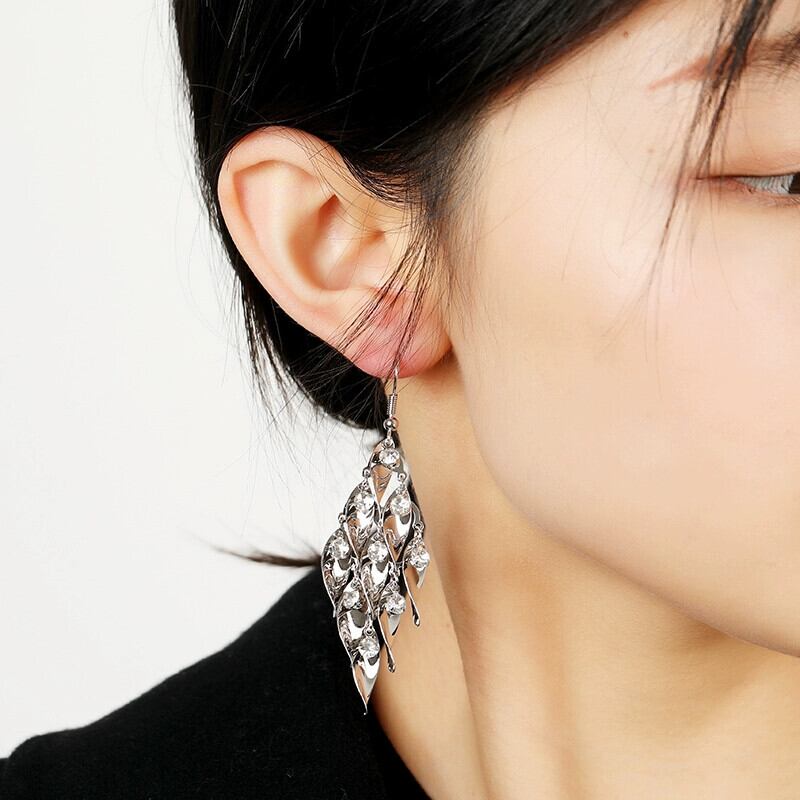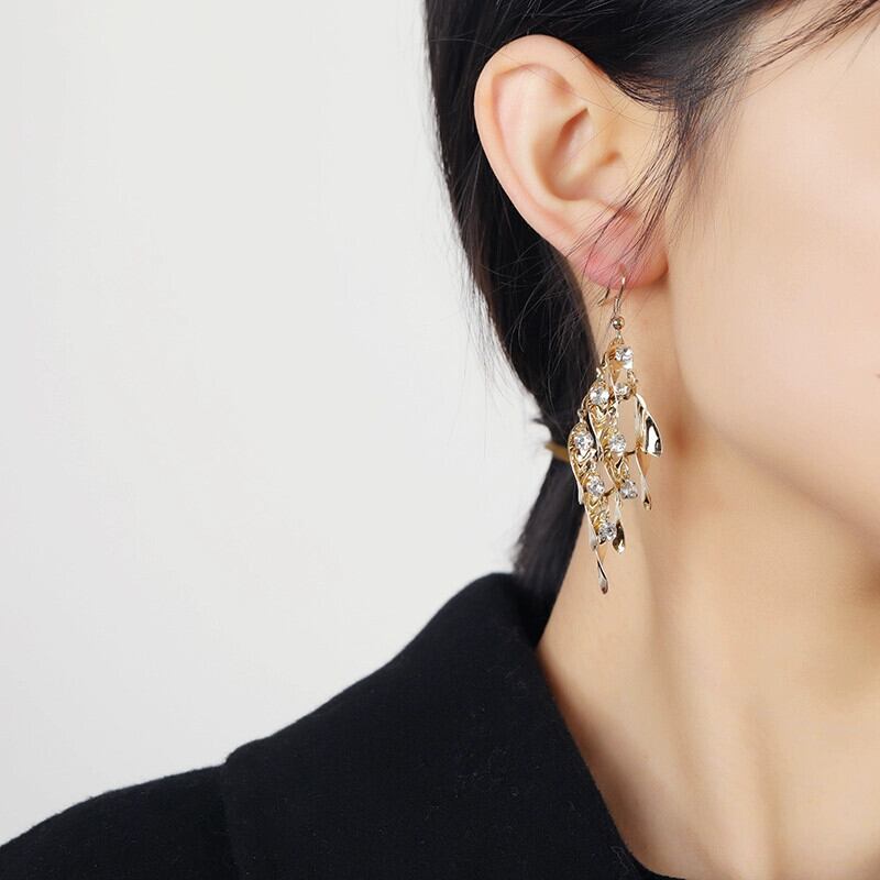 高級気質ロングテルイヤリング女性の丸顔に見える薄い菱形クリスタル光沢のあるイヤリングイヤリング 指輪 shipin90708619180