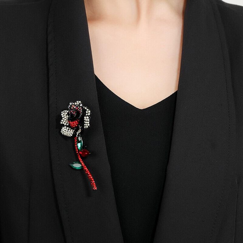 ニッチなヨーロッパとアメリカの気質レトロレッドローズダイヤモンドブローチハイエンドエレガントなオールマッチフラワーブローチコサージュ女性アクセサリー フラワーデザイン ヨーロピアン shipin81797864957