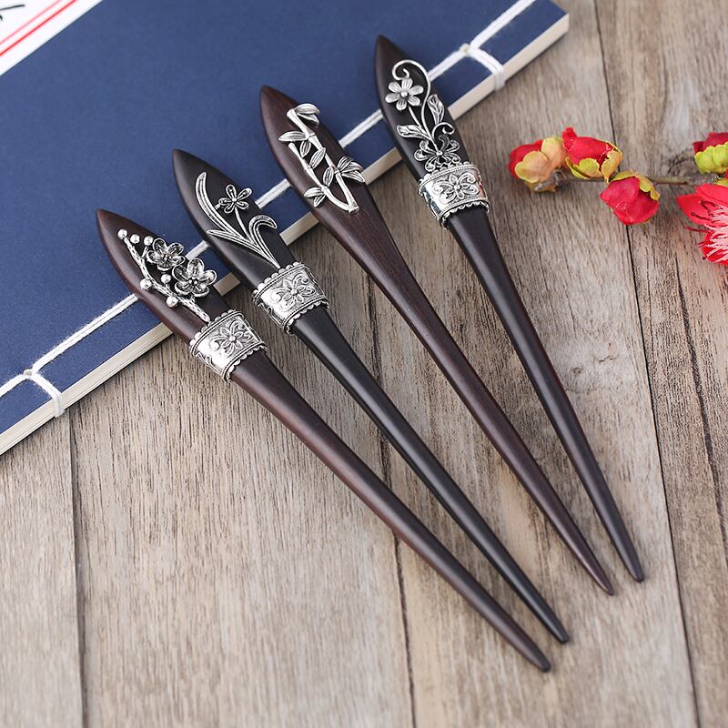 クリカル黒白檀梅蘭竹菊ヘアピンレトロ宮殿シンプルな気質パンヘアピンヘアピン頭飾り ブラック レース shipin95929369866