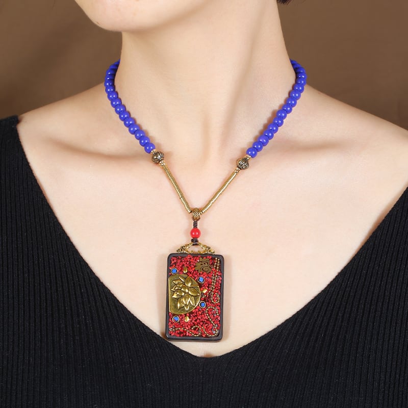 ネパールエスニックスタイル黒白檀仏ネックレス男性と女性レトロシンプルなショート鎖骨チェーン綿とリネンの衣類アクセサリー ブラック コットン レース shipin600516199